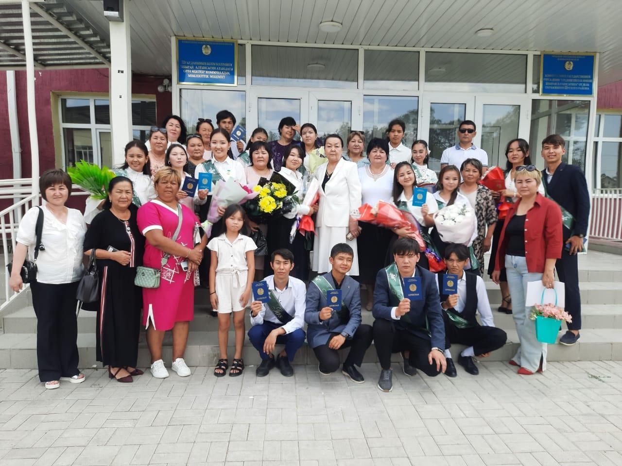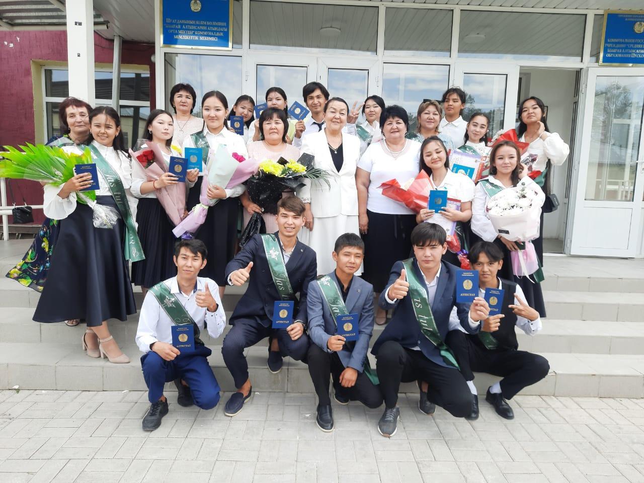 Шу қаласы «Ыбырай Алтынсарин атындағы орта мектебі» коммуналдық мемлекеттік мекемесінде 2023 жылдың 21 маусым күні «Жамбыл облысы әкімдігінің білім басқармасы Шу ауданның білім бөлімі» коммуналдық мемлекеттік мекемесінің № 02-03-2563 шығыс хатына сәйкес «Болашақ -жастардікі» тақырыбында 9 сынып түлектеріне негізгі орта білім беру туралы, 11 сынып түлектеріне жалпы орта білім беру аттестаттын тапсыру салтанатты іс-шарасы өткізілді. Биылғы дәстүрлі жиынның ерекшелігі, мемлекеттік емтиханның қортындысы бойынша үш түлегіміз Қырғызбай Мадина Ержанқызы, Мағауия Лаура Марсқызы, Нұрлан Мейірім Нурдинқызы «Алтын белгі» иегерлері, 1 түлегіміз Анарбекова Нұршат Әділқызы «Үздік атестат» иегері , 9 сыныптың 4 түлегі - Болат Асқар Бақытұлы, Жақан Бекбол Жарылқапұлы, Сүлейман Рамазан Сұлтанханұлы, Тамаша Айзере Айдосқызы «Үздік аттестат» иегерлері атанып отыр. Бұл ұстаздар мен ата - аналардың үкілеген зор үмітін ақтады деген сөз. Жалпы саны 9 сыныптың 54, 11 сыныптың 17 түлегіне аттестат табысталып, мектеп директоры Джумагулова Айгуль Сериковна , ата-аналар, ұстаздар түлектерге жылы лебіздерін білдірді. Ақ жол! Сәт сапар! Тек биіктен белестерден көрініңіздер 2022-2023 оқу жылының түлектері!