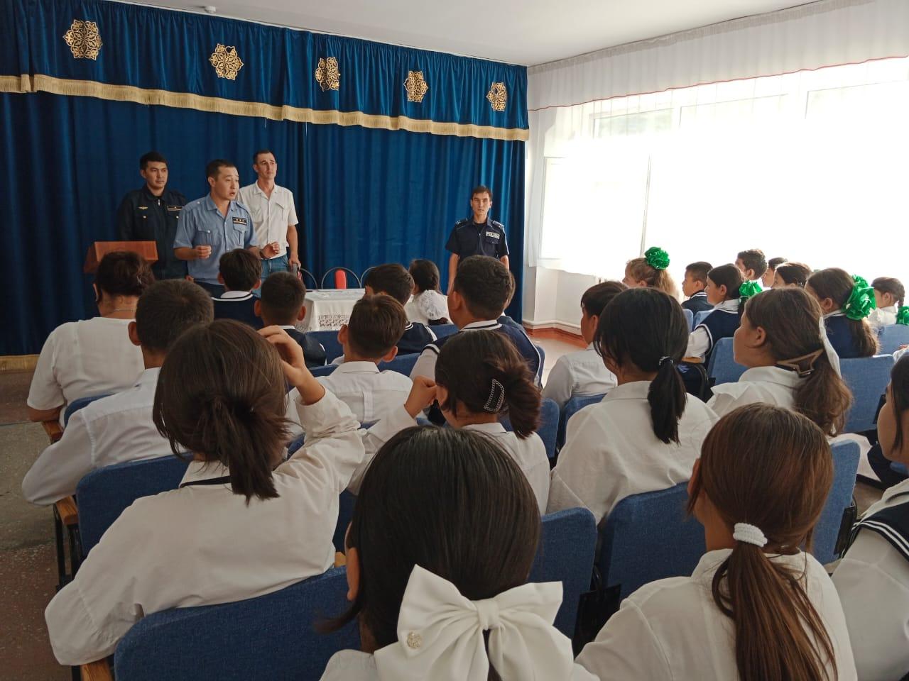Шу қаласы Ыбырай Алтынсарин атындағы орта мектебінде 6-7 сыныптардың білім алушыларына темір жол аумағындағы төтенше жағдайлардың алдын алу шаралары мен балалардың өмірі мен денсаулығын, қауіпсіздігін қамтамасыз ету мақсатында Шу ст ЖПБ ӘПБ инспекторы полиция лейтенанты А.Ж.Мырзанның және ПЧ – 50 мекемесінің инженер – технологының қатысуымен 6- қылмыстың алдын алу және «Назар аударыңыз балалар!» жедел профилактикалық іс-шарасы жөнінде түсіндірме жұмыстары жүргізілді.