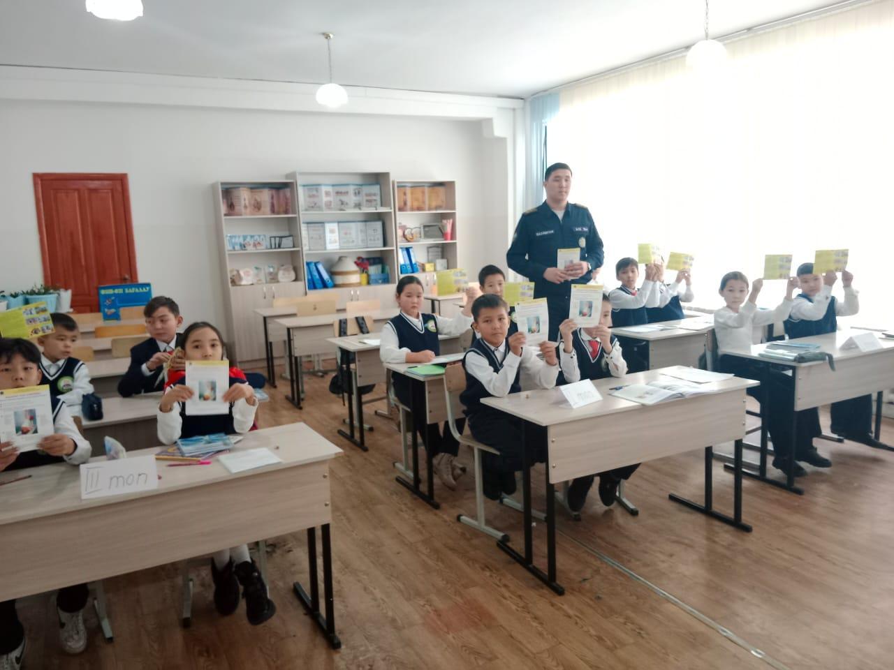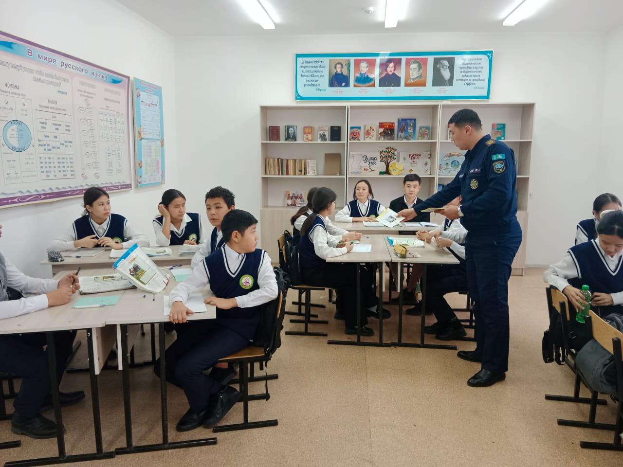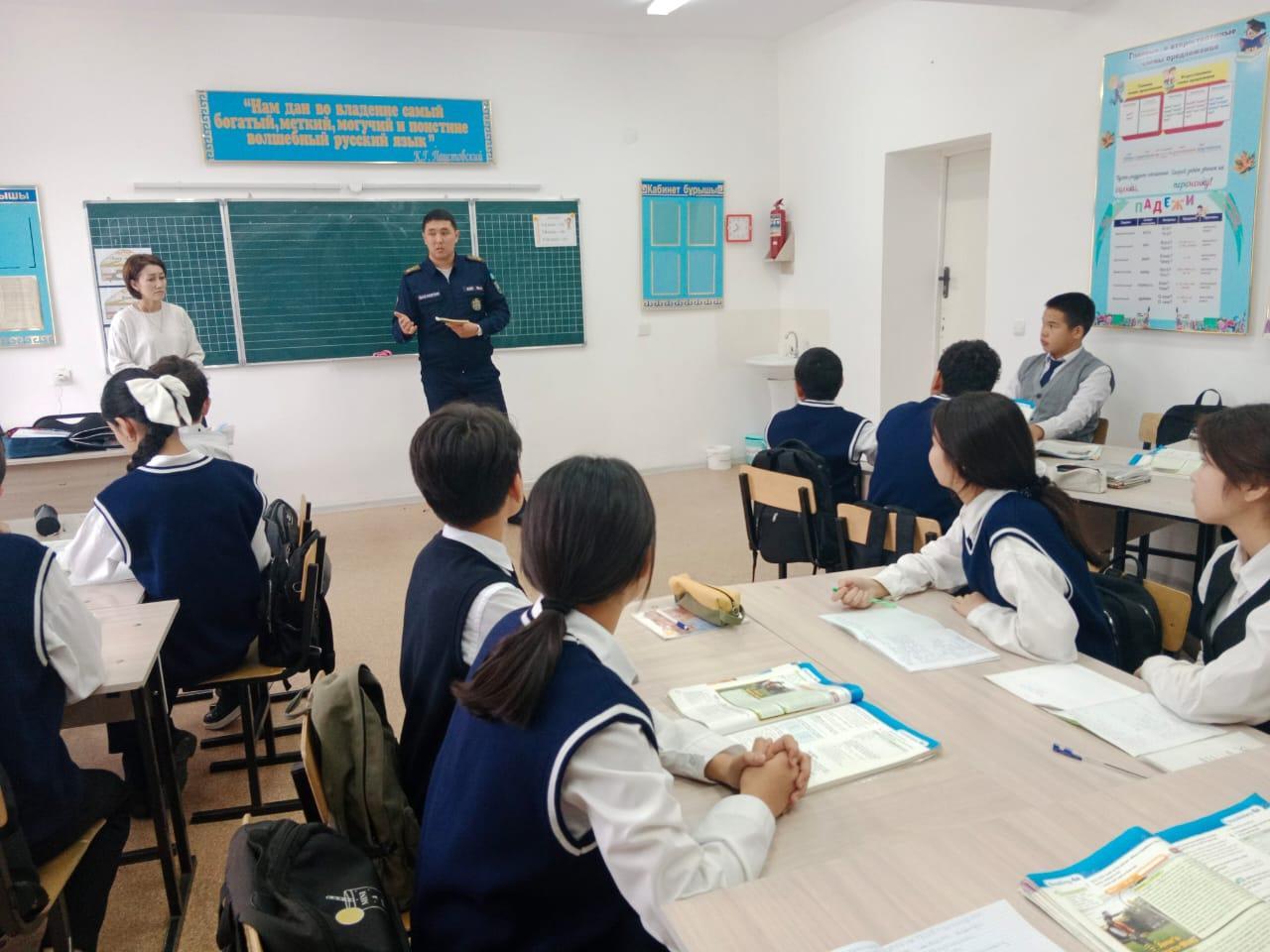 Шу қаласы «Ыбырай Алтынсарин атындағы орта мектебі» КММ-нде 2023 жылдың 7-желтоқсан күні Шу ауданы төтенше жағдайлар бөлімінің қызметкерлері М.Б. Пернебаев пен М.Т.Джумурбаев жасөспірімдердің қауіпсіздігін қамтамасыз ету мақсатында білім алушыларға өрт қауіпсіздігі, терезеден құлап кету қауіпсіздігі бойынша үгіт насихат жұмыстарын жүргізіп бейнероликтер көрсетіп, жадынамалар таратып берді.