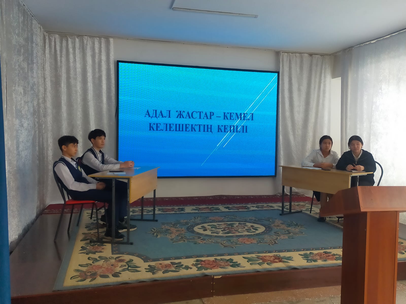 Шу  қаласы  «Ыбырай  Алтынсарин  атындағы  орта  мектебі» коммуналдық мемлекеттік  мекемесінде  тәрбие  жұмысының  жоспарына   сәйкес, 2024 жылдың қаңтар айының  30-ы күні  «Адал  жастар  кемел –келешектің  кепілі»   тақырыбында 8 «А» және 8 «Б» сыныптар  арасында  дебат    өткізілді.Пікірсайысқа  «Ақиқат» және   «Ой-Дария»  фракциялары  қатыстырылды. Атқарылған іс-шара бойынша  мәлімет,  мектептің  әлеуметтік  парақшараларына  салынды.
