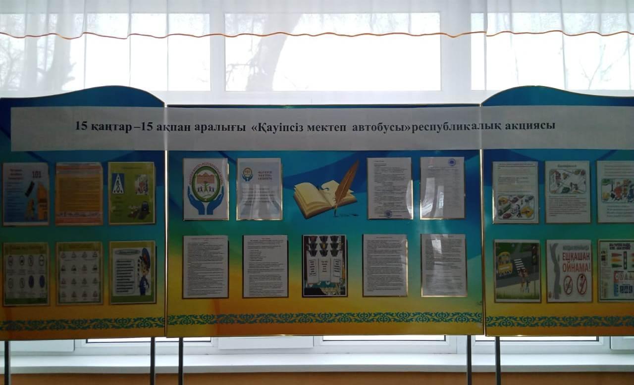2020 жылдың 15 қаңтар – 15ақпан аралығында «Қауіпсіз мектеп автобусы» республикалық акциясы өтуде. Акцияның мақсаты – оқушыларды жолда дұрыс жүріп-тұруға тәрбиелеу. Жол белгілерін ажырата білуге баулу. Жол жүру ережесін сақтауға тәрбиелеу.Акция барысы туралы іс-шара жоспары құрылып бекітілді.