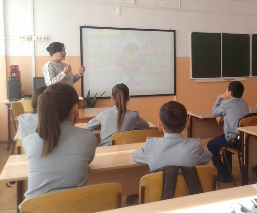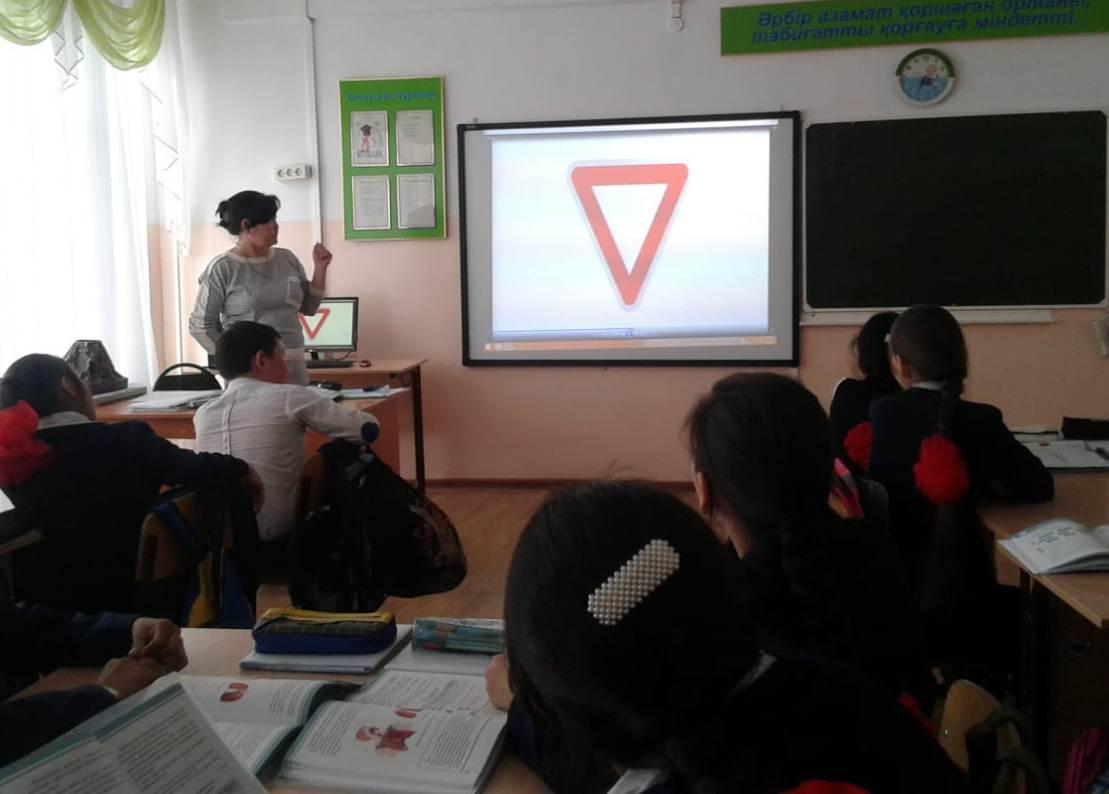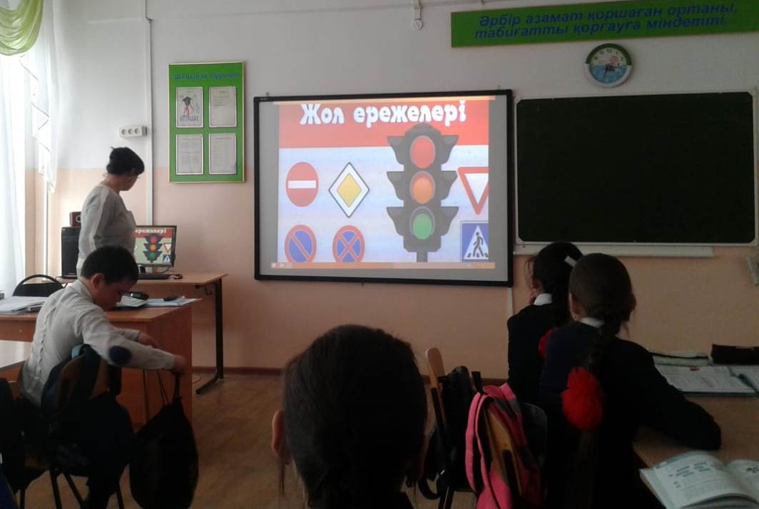 Шу қаласы Ыбырай Алтынсарин орта мектебінде «Қауіпсіз мектеп автобуы» акциясы аясында жоспарға сай мектеп тәлімгері А.Ақшабаева «Жол ережесін сақтайық » тақырыбында мектеп оқушыларына жол белгілерін ажырата білуге, жол қауіпсіздігін қатаң сақтауға байланысты видеороликтер көрсету арқылы түсіндірме жұмыстарын жүргізді.