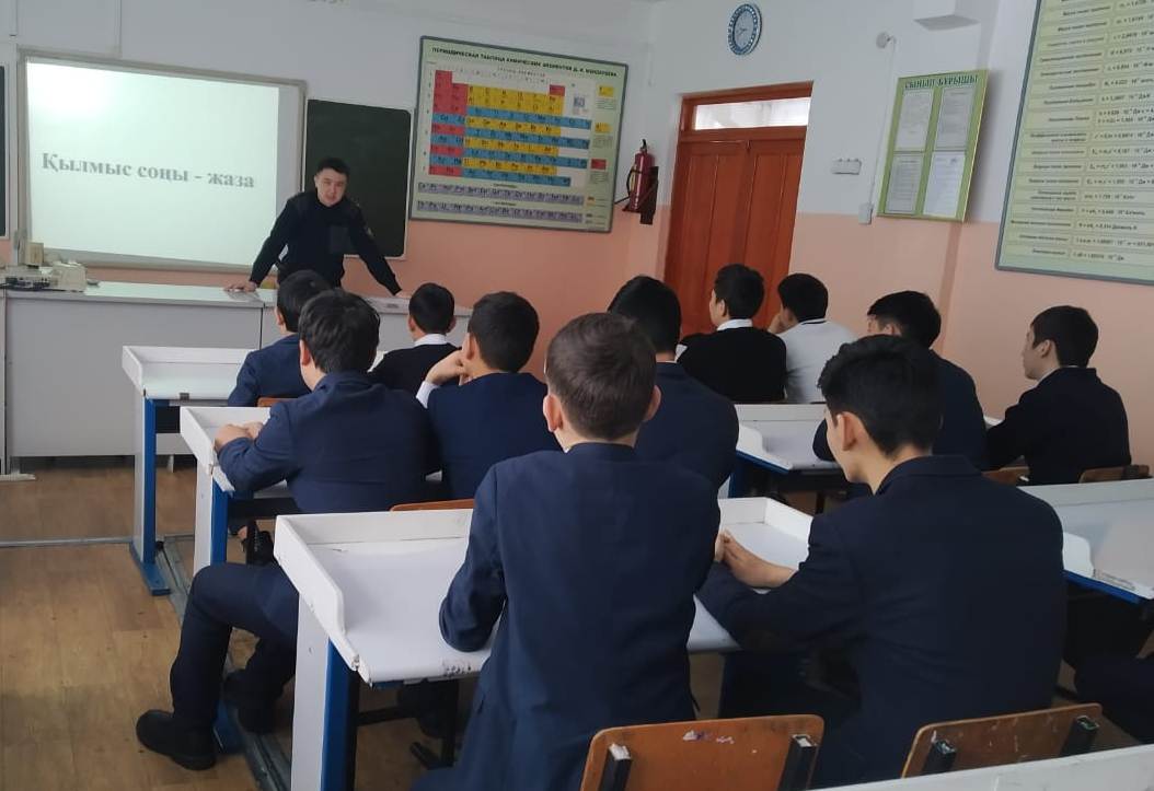 Шу қаласы «Ыбырай Алтынсарин атындағы ота мектебі» КММ директорының құқық ісі жөніндегі орынбасары М. Нурбекованың ұйымдастыруымен 2020 жылдың қаңтар айында «Қылмыс соңы – жаза» атты тақырыпта кездесу өткізілді. Кездесу барысында оқушылар «Жасөспірімдер арасындағы қылмыс» атты бейнероликті тама¬шалады. Бұдан кейін ҚР Қылмыстық кодексі, қылмыс пен құқық бұзушылықтың салдары, оның алдын алу жолдары, қылмыстық жаза мен жауапкершілік, кәмелетке толмағандардың арасындағы ерте жыныстылық пен жыныстық сипаттағы қылмыстар тақырыбында әңгіме жүргізілді.