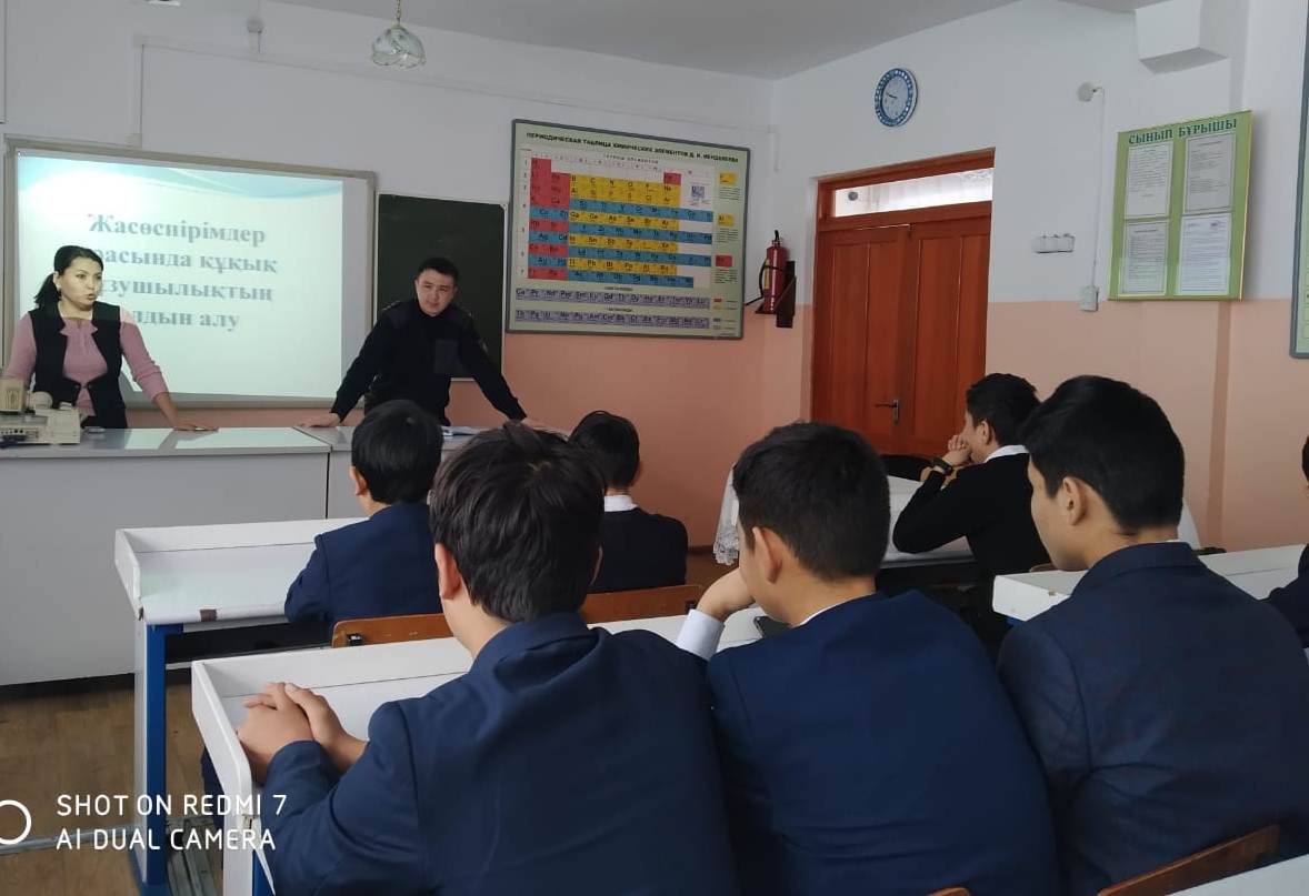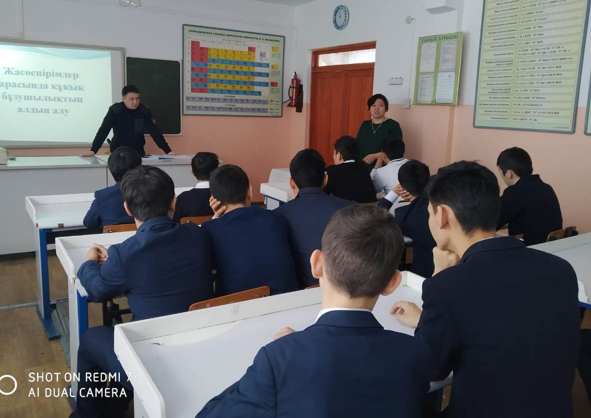 Шу аудандық ЮПТ-ның инспекторы полиция капитаны Б.С.Джабасбаев 2020 жылдың қаңтар айында «Ыбырай Алтынсарин атындағы орта мектебі» КММ-де 8-11 сыныптың ұлдары арасында жасөспірімдер арасында бұзақылықты болдырмау мақсатында «Кәмелетке толмағандар арасында құқық бұзушылықтың алдын алу профилактикасы» тақырыбында дәріс оқыды. Дәрісті 36 оқушы тыңдады.