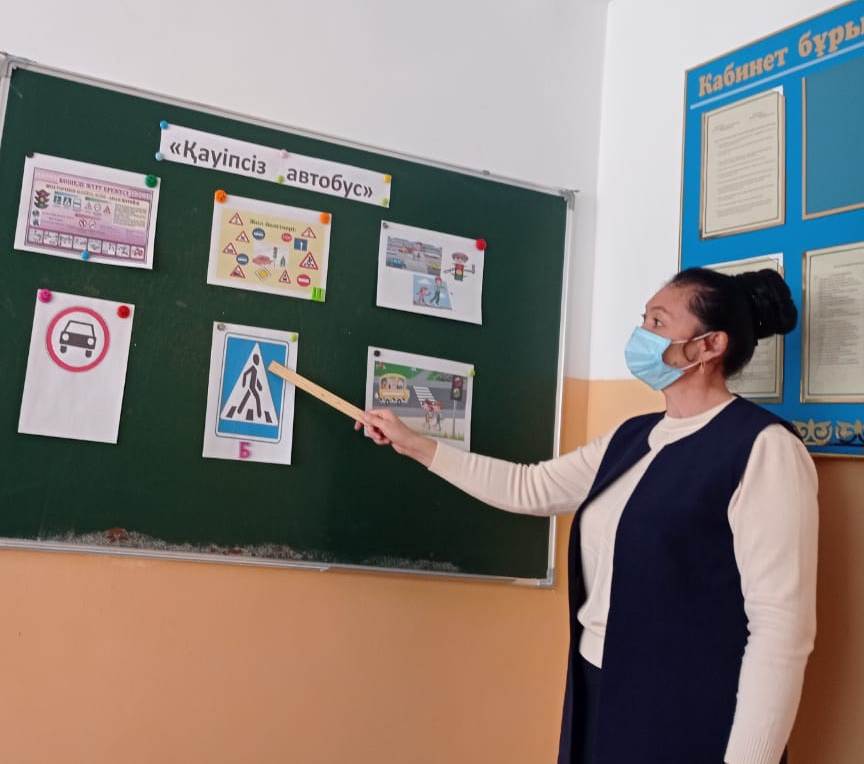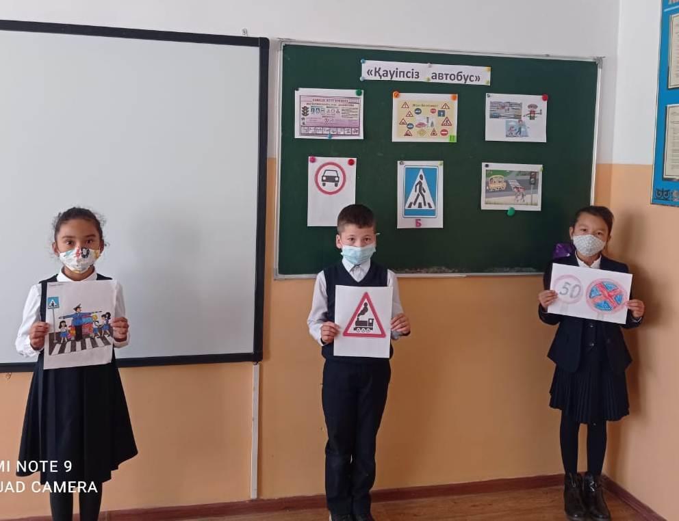 Шу қаласы «Ыбырай Алтынсарин атындағы орта мектебі» КММ-де 2020 жылдың 5-9 қазан аралығында «Қауіпсіз мектеп автобусы » республикалық акциясы аясында іс-шара жоспарына сәйкес жол ережесін білу, оны бұлжытпай орындау, өзіңді сақтау және өзгеге қауіп төндірмеу , бағдаршам белгілерін ажырату, көше тәртібін сақтау ережесін түсіндіу мақсатында «Жол ережесін сақтайық», «Қауіпсіз автобус», «Жол ережесін білу маңызды» атты тақырыптарда 1-11 сыныптарда сынып жетекшілер сынып сағаттарын жүргізді. Оқушыларға WhatsApp әлеуметтік желісі арқылы жадынамалар таратылды.