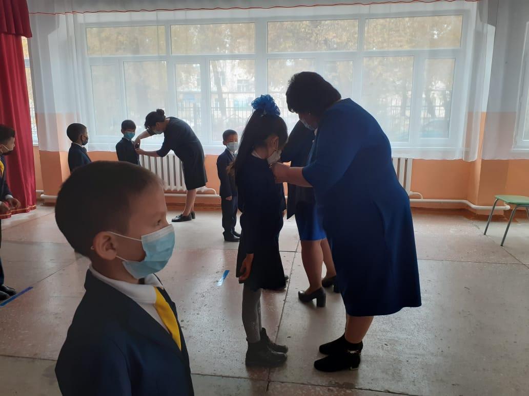 2 «Б» сыныптарының 11 оқушысы қабылданды. Іс – шараға мектебіміздің директоры Сейдахметова Гүлбағила Бектібайқызы, директордың ғылыми әдістемелік орынбасары Ақшегерова Ғалия Жаңқашқызы, директордың тәрбие ісі жөніндегі орынбасары Адалбекова Асем Рустемқызы және математика пәні мұғалімі Қожамқұлова Замира Алибекқызы қатысты.