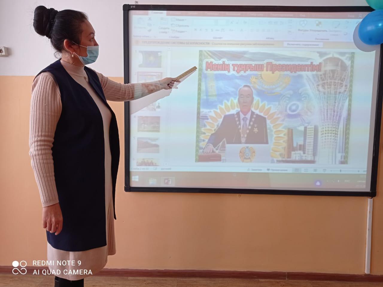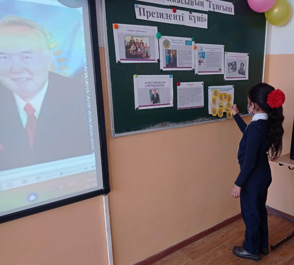 Шу қаласы «Ыбырай Алтынсарин атындағы орта мектебі» КММ-де 2020 жылдың 23-28 қараша күндері Қазақстан Республикасының Тұңғыш Президенті күнін меркелеуге арналған іс-шара жоспарына сәйкес 5-11 сынып үшін «Парасатты шешім», «Болашаққа бастар жол» сияқты деректі фильмдер көрсетіліп, сынып сағаттары өткізілді. Сынып сағаттарының барысында 8-11 сынып оқушыларымен Тұңғыш Президенттің ел дамуындағы рөлі талқыланып, пікірталас жүргізіліп, ақпарат берілді.