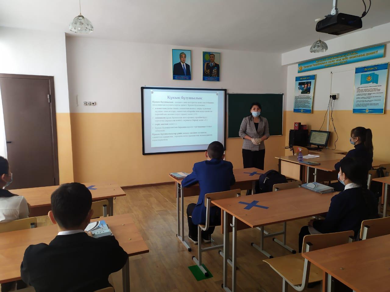 Шу ауданы білім бөлімінің «Қиын бала болмайды» жобасы аясында Ыбырай Алтынсарин атындағы орта мектебінде директордың құқықтық тәрбие ісі жөніндегі орынбасары М.М.Нурбекова 2021 жылдың