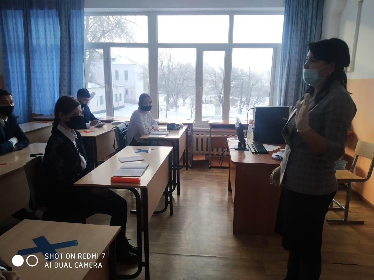 26 қаңтар күні кәмелетке толмағандар арасында құқық бұзушылықтың алдын алу мақсатында «Жасөспірімдер арасында қылмыс пен нашақорлықтың алдын алудың өзекті мәселелері» тақырыбында санитарлық-эпидемиологиялық талаптарды сақтай отырып 9,11 сынып оқушыларымен дөңгелек үстел өткізді.