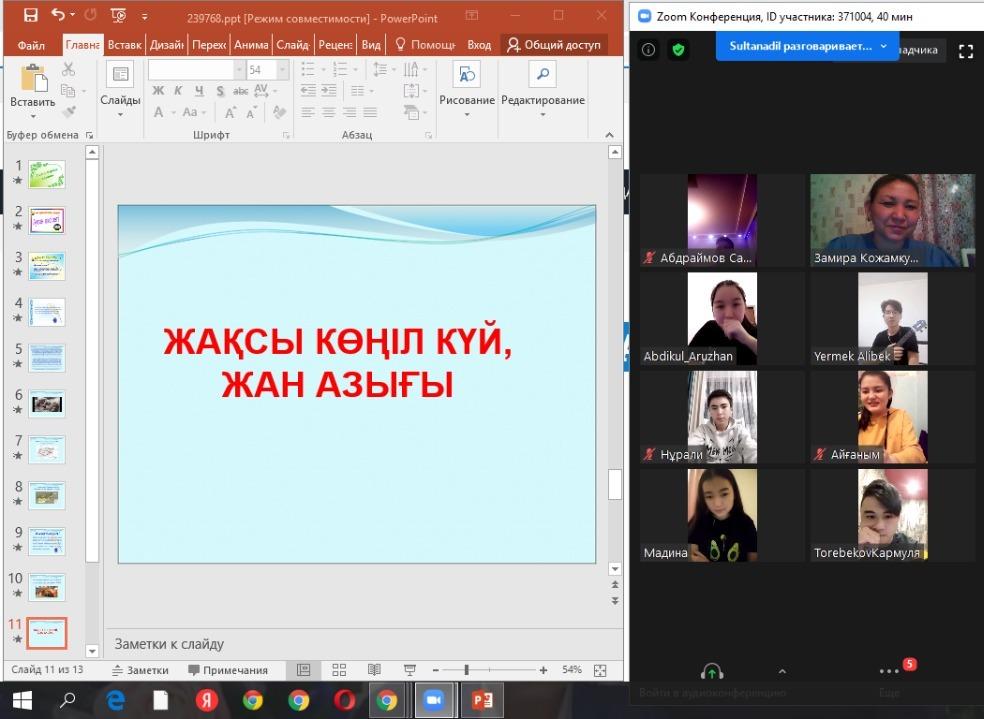 2021 жылдың 15-19.02 күндер аралығында 1-4 сыныптар арасында «Мен өмірді сүйемін!» тақырыбында сынып сағаты өткізілді. Сонымен қатар «Жақсы көңіл-күйге шақырамыз» тақырыбында 5-8 сынып аралығында сынып сағаттарын өткізді. 1-4 сыныптар арасында өткізілген сынып сағаттарын сынып жетекшілер оқушыларға бақыт,қуаныш, сүйіспеншілік құндылықтарының мән-мағынасын түсіндірді. Адам баласының ең бақытты шағы балалық шағы екендігі, ата-анасының қасында, ұйқысы қанық, қарны тоқ,шат-шадымен күлкімен өткізетін өмірдің қайталанбас сағынышқа толы кезеңдері туралы айтып өтті. 5-8 сынып арасында «Жақсы көңіл-күйге шақырамыз» атты сынып сағатын онлайн режимінде өткізді. Сынып сағатының барысында оқушылар бір-бірлеріне жақсы тілектер айтып, жақсы көңіл-күй сыйлай білу