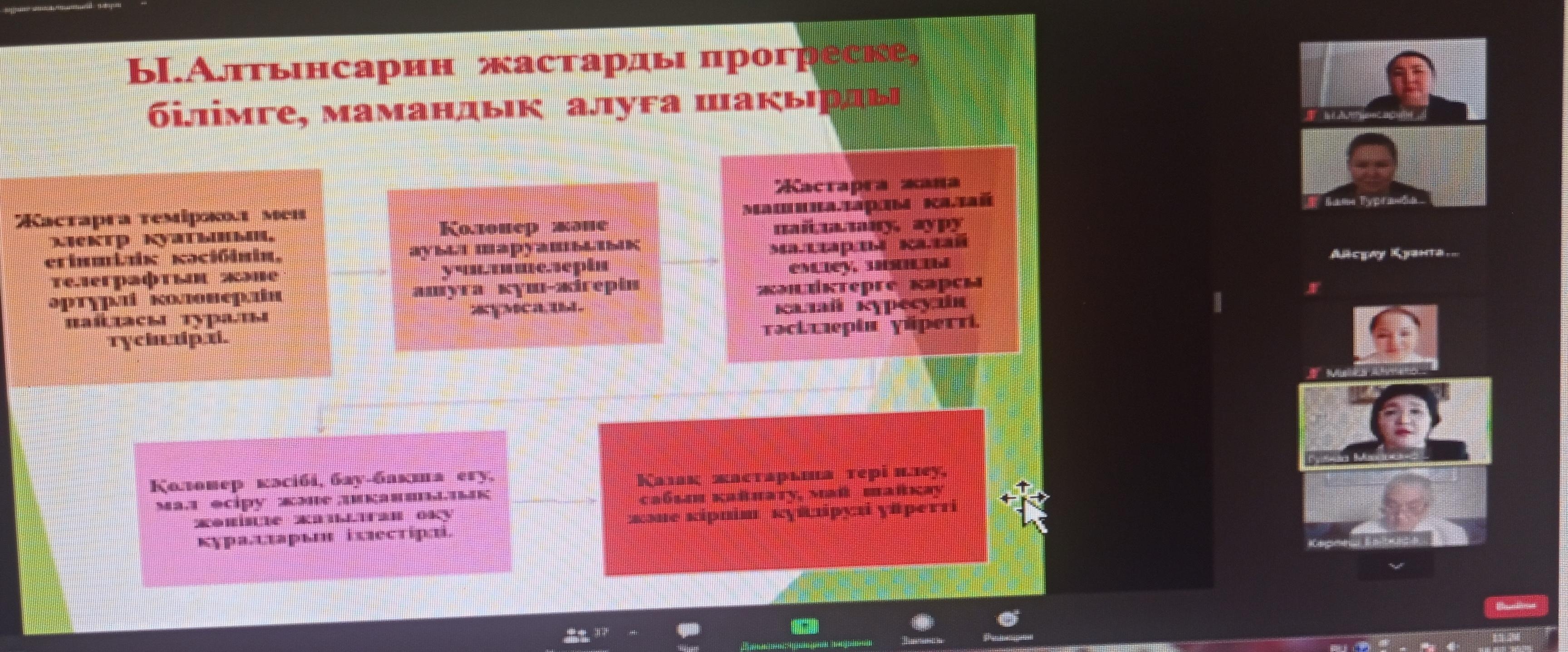 Шу қаласы «Ыбырай Алтынсарин атындағы орта мектебі» КММ – де 2021 жылдың 18-ақпан күні Қазақстан Республикасының Тәуелсіздігінің 30 жылдығы қарсаңында қазақ халқының тарихында аса көрнекті орын алған ұлы ағартушы – педагог Ыбырай Алтынсаринның 180 жылдығына орай «Ыбырай Алтынсарин - балалар әдебиетінің негізін салушы» тақырыбында аудандық онлайн – семинар өткізілді. Семинардың мақсаты: Ыбырай Алтынсаринның қазақ әдебиетінде балаларға арнаған шығармаларын насихаттау, педагогикалық идеяларын негізге алу, іске асыру. Семинарға Ыбырай Алтынсаринның тікелей ұрпақтары немересі Нағима Абдоллақызының қызы, жиен шөбересі Жұмакүл Бәйдібекқызы және Нағима Абдоллақызының көзін көрген «Ыбырай Алтынсарин» медалінің иегері, ардагер ұстаз Көрпеш Байжарасқызы қатысып, құнды да тың мәліметтер берді. Аудандық білім бөлімінің әдіскері Байжолова Айсұлу Қуантайқызы және семинарға қатысушы мұғалімдер алған әсерлерімен бөлісіп, алғыстарын білдірді. Ыбырай Алтынсаринның 180 жыл толу мерей тойына байланысты бекітілген іс – шаралар жоспары жыл бойы жүргізіледі.