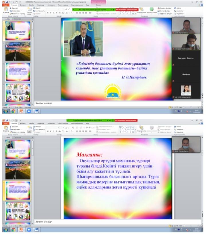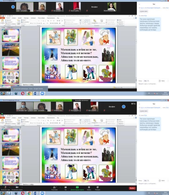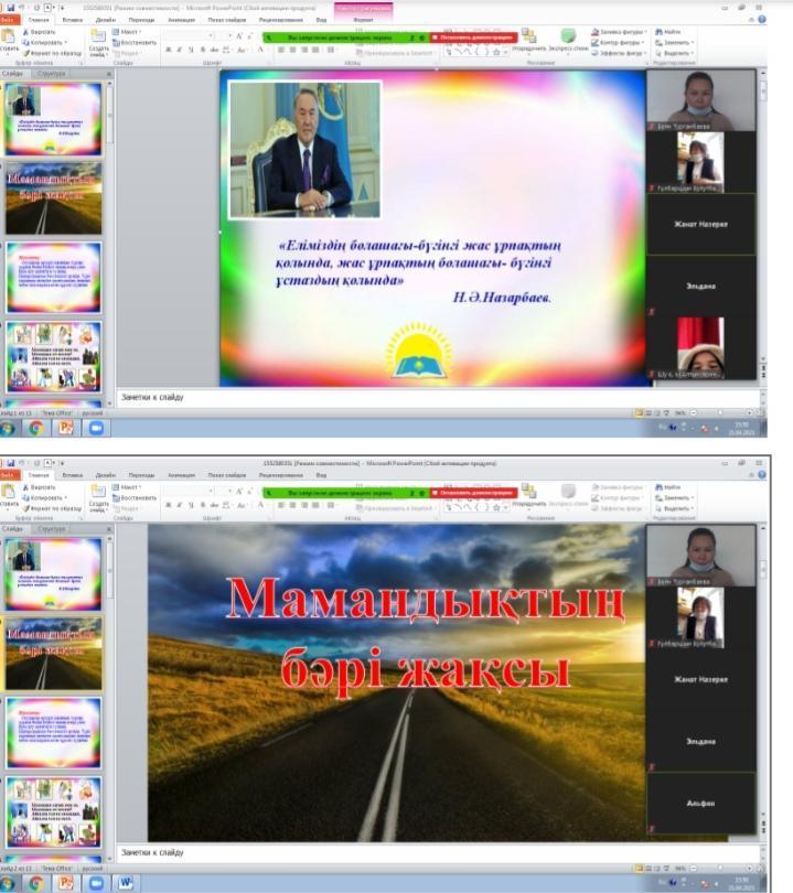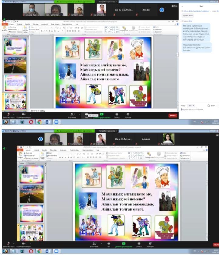 Шу қаласы «Ыбырай Алтынсарин атындағы орта мектебі» КММ-де 2021 жылы сәуір айының 21 күні “Jambyl -tylek.kz” жобасы аясында “ Туған өлкенің танымал түлегі ” тақырыбында мектеп оқушыларымен кездесу үшін мектебіміздің түлектері Булутбаева Гүлбаршын Адилхановна, Джанадилова Мақпал Тархунбаевна, Арысбаева Айнаш Сатаркуловна Zoom платформасы арқылы онлайн конференцияға шықты. Мақсатымыз- мамандық таңдауда жауапкершілікті қалыптастыру; оқушының кәсіби бағдарының табандылығын анықтау, психологиялық дайындығы мен қиындықтан шығу шеберлігін шыңдау; оқушылардың кәсіптік қалыптасуымен байланысты өмір туралы, әлеуметтік құндықлықтар туралы танымдылығына психологиялық- педагогикалық көмек көрсету. Мұндай кездесулер тәрбиелік тақырыпты ғана қозғамай, белгілі тұлғаны да жастарға танытады, тәжірибе береді. Конференция барысында ол өзін таныстыра отырып жетістікке қалай жеткені жайлы тәжірибелерімен бөлісті. Мектеп оқушыларына білім алып, тәрбиелі азамат болуларына ерінбей еңбек етсе бәріне қол жеткізуге болатынын айтты. Жастар неден қателеспеу керек, қандай бағытқа басымдылық берген дұрыс екенін де тілге тиек етті. Аз ғана уақыт ішінде оқушылар сұрақ қойып, пікір алмасты