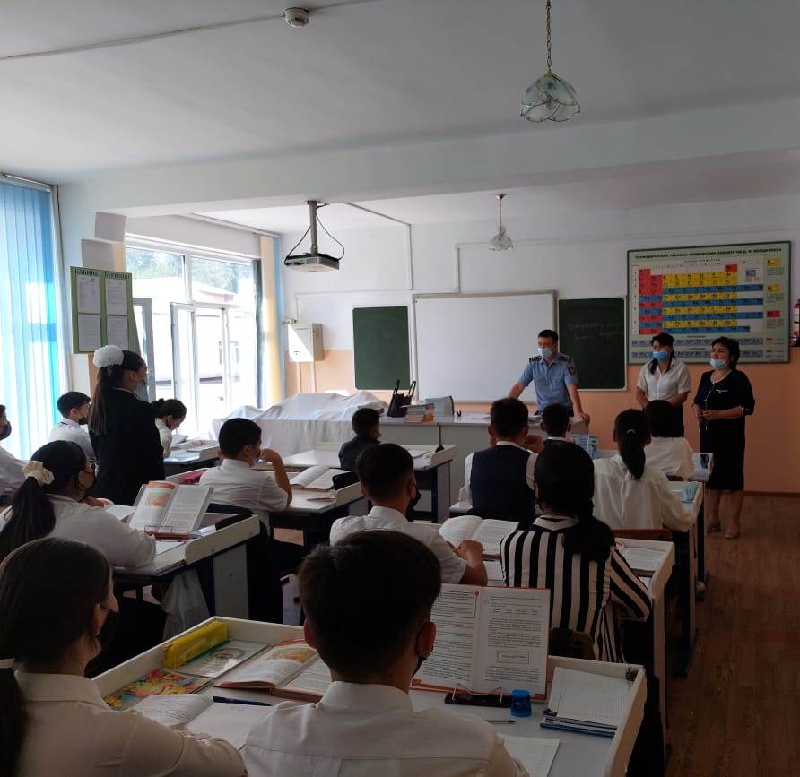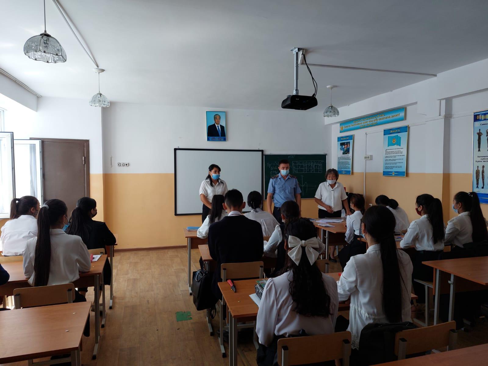 Шу ауданы әкімдігінің білім бөлімінің«Ыбырай Алтынсарин атындағы орта мектебі» КММ-нде 2021 жылдың 13-19 қыркүйек аралығында өткізіліп жатқан «Жасөспірім» жедел профилактикалық іс-шарасы аясындда 17 қыркүйек күні Шу АПБ-нің ЖПҚ ЮПБ-нің учаскелік полиция инспекторы полиция капитаны Б.С.Джабасбаев кәмелетке толмағандар арасында құқық бұзушылықтың алдын алу және жасөспірімдерді көшелерде, ойын-сауық орталықтарында, темір жол бойында, беймезгіл уақытта себепсіз жүрудің, қоғамдық орындарда тәртіпсіздік пен қақтығыстықты болдырмау және тәртіп ережелерімен таныстыру мақсатында дәріс өткізді.