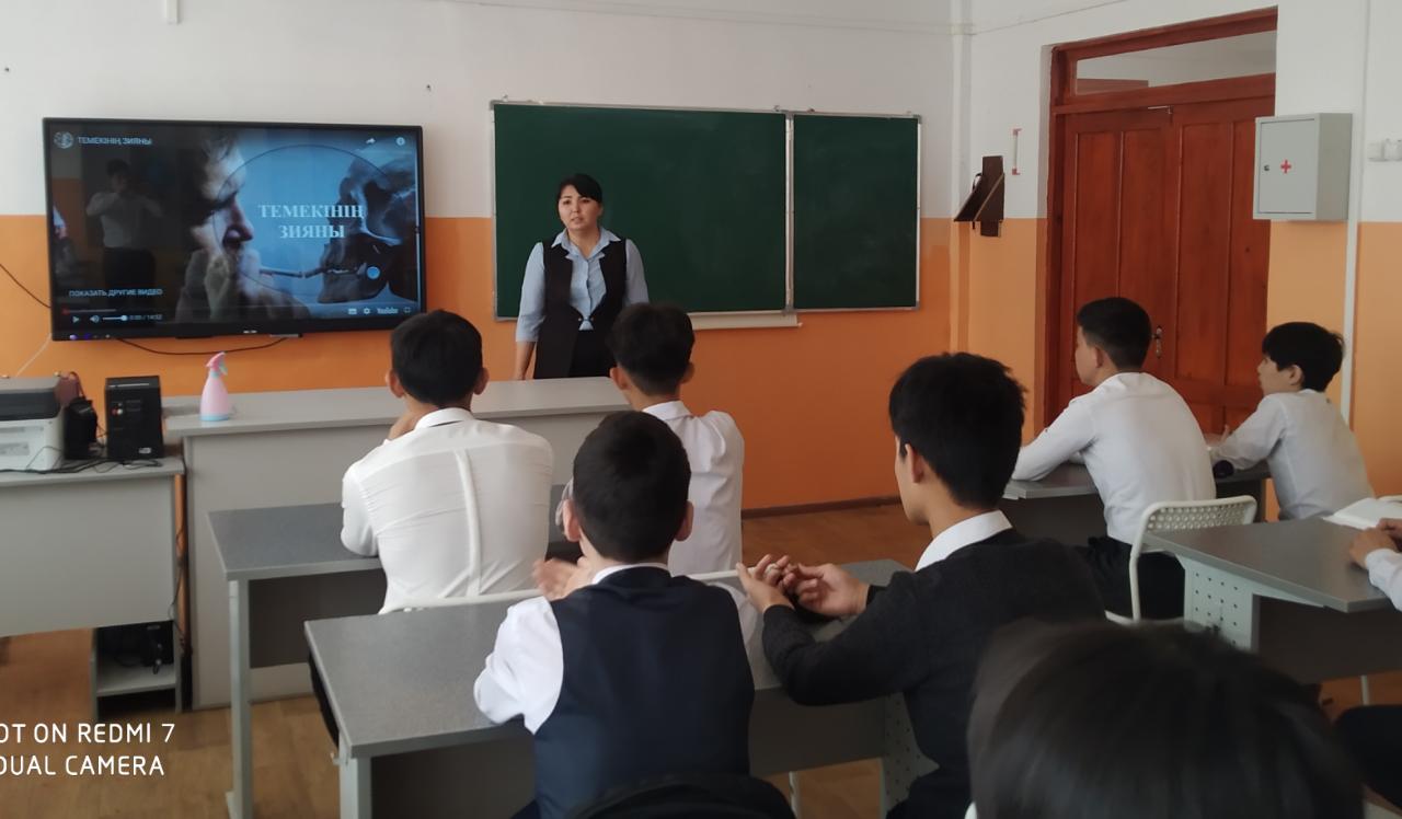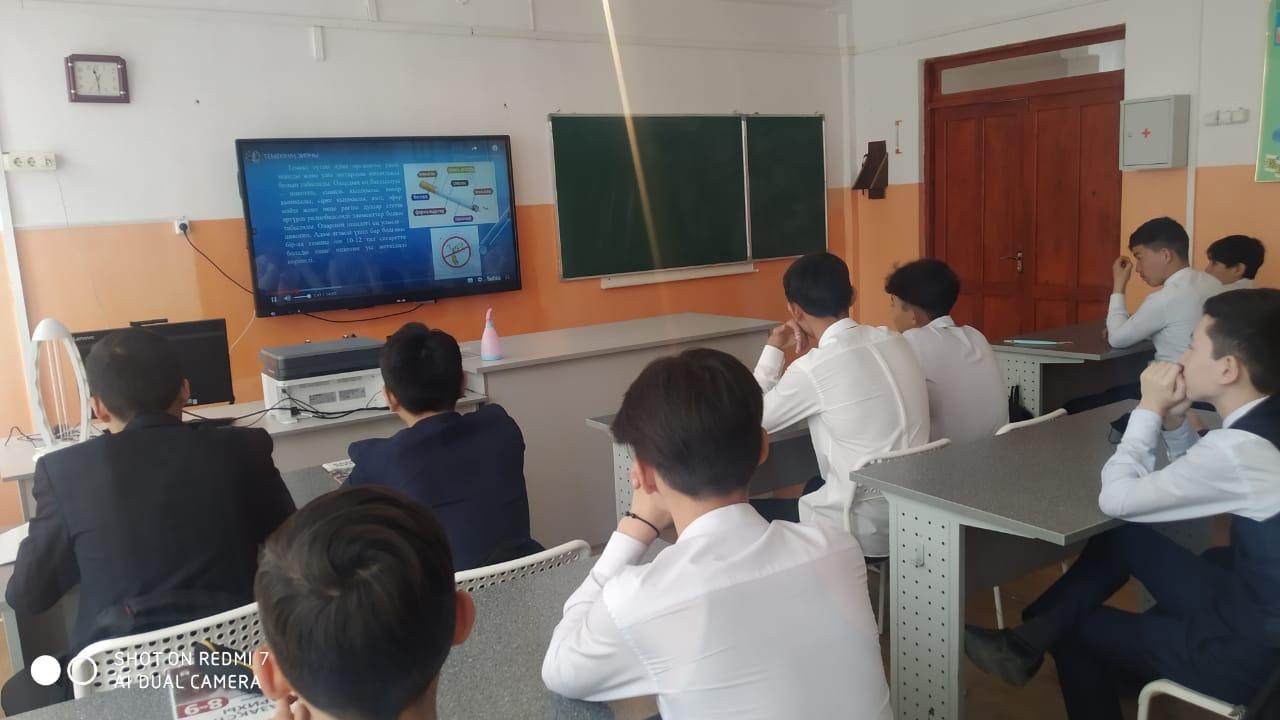 Шу қаласы «Ыбырай Алтынсарин атындағы орта мектебі» КММ-де 2022 жылдың 31 наурыз күні ДҚТІЖО М.Нурбекова 8-9 сыныптардың ұлдарына «Темекі мен ішімдіктің зияны» тақырыбында түсіндірме жұмысын жүргізіп, бейне баяндар көрсетті. Түсіндірме жұмысының мақсаты: білім алушыларға бірінші байлық – денсаулық екенін ұғындыра отырып, зиянды заттардан аулақ болуға, салауатты өмір салтын ұстануға тәрбиелеу. Темекінің, ішімдіктің зиянына ғылыми дәлелденген деректер бойынша нақты фактілермен көз жеткізу, өркениетті елімізге лайықты зиянды әдеттерге қарсы күресетін, білімді де тәрбиелі тұлға қалыптастыру.