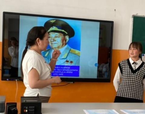 Шу қаласы "Ыбырай Алтынсарин атындағы орта мектебі" КММ-де 2022 жылы сәуір айының 4 күні тарих пәні мұғалімі Тұрғанбаева Баян Мұхтарқызы 8 «А» сынып білім алушыларымен«Мәңгілік Ел алыбы: Талғат Бегилдинов» тақырыбында ерлік сабағы өтті. Кеңес Одағының Батыры атағын екі рет алған ұшқыш жауынгер Талғат Бигелдиновтың ерлік істері туралы әңгімелей отырып, өмір жолын, ерлігін танытып және үлгі-өнеге тұту.