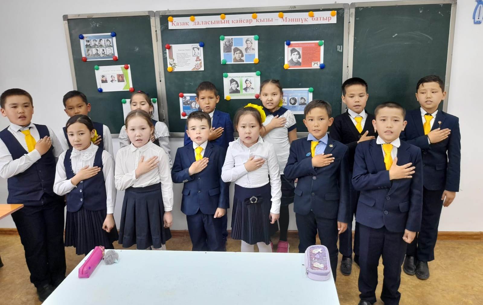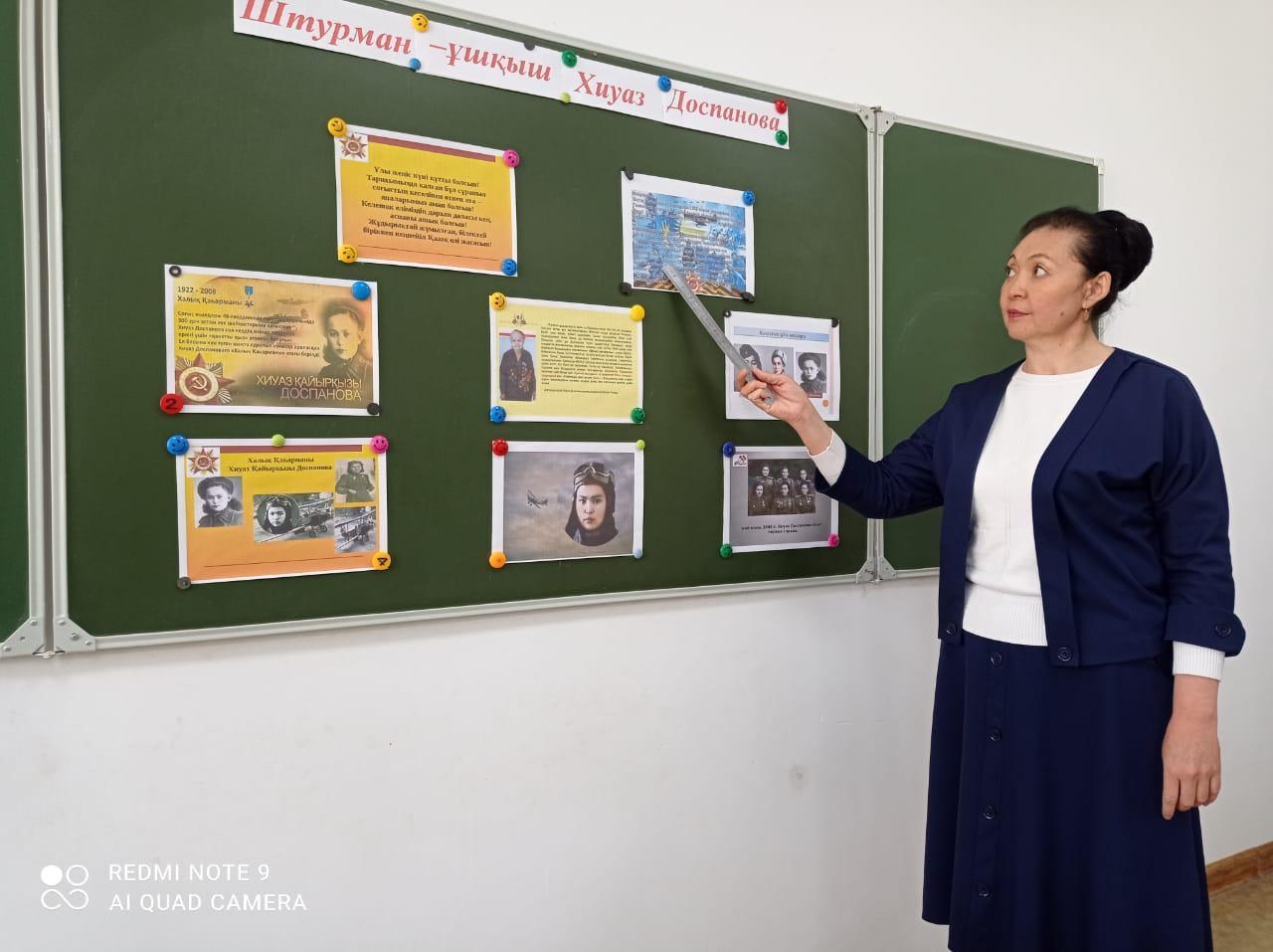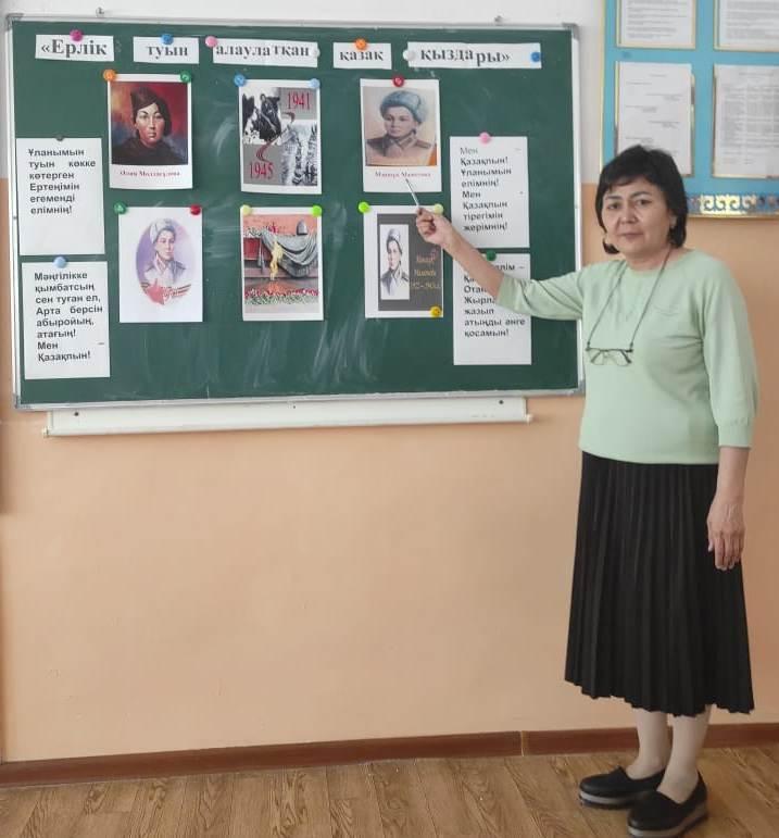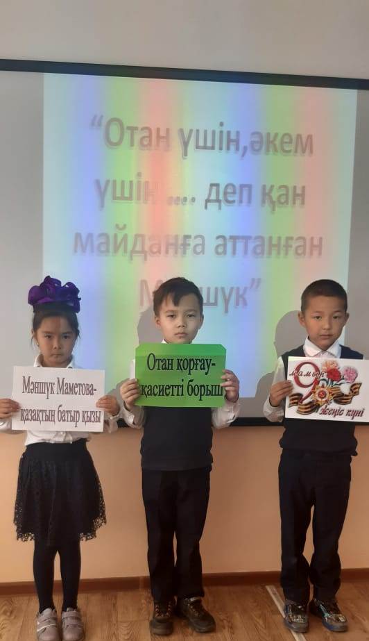Шу қаласы «Ыбырай Алтынсарин атындағы орта мектебі»КММ-де 2022 жылы  бастауыш сынып мұғалімдерінің   ұйымдастырумен 11 сәуір күні қазақ батырлары Мәншүк Мәметова мен Хиуаз Доспанованың 100 жылдық мерейтойына  орай «Қазақ даласының қайсар қызы-Мәншүк батыр», «Ерлікті туын алаулатқан қазақ қыздары»  тақырыбында    тәрбие  сағатын өткізді. Тәрбие сағатының мақсаты: Ел қорғаған жаужүрек батырларымыз туралы ақпарат бере отырып, отанды сүюге, елін, жерін қорғауға   тәрбиелеу.  Тәрбие сағатының барысында отан үшін жан қиған тек ерлер ғана емес нәзік жанды қыздарымызда ерлікпен шайқасқандығы  туралы айтылды.