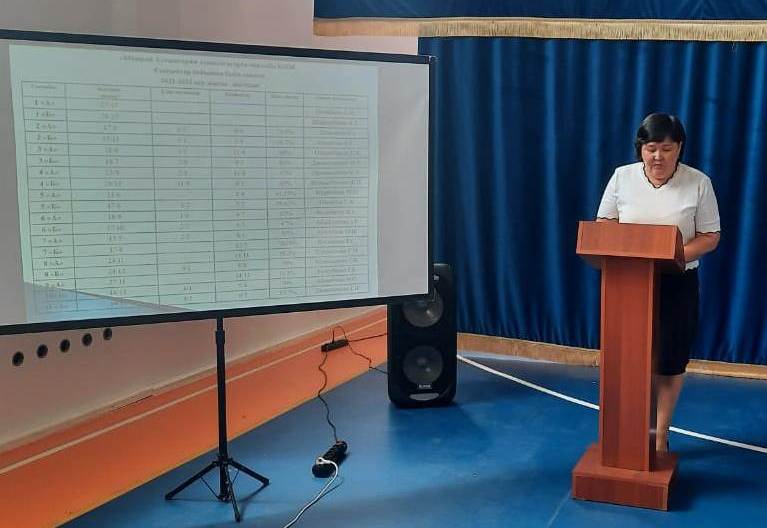 Жиналыс барысында мектеп директоры Г.Б.Сейдахметова 2021-2022 оқу жылында атқарылған жұмыстың есебін беріп, оқу жылының білім сапасының жылдық қорытындысы, мектеп бітіру кеші, аттестат тапсыру салтанатты жиынының өткізілуі жайлы ақпарат берілді.2021-2022 оқу жылына арналған мектеп формасы,жазғы сауықтыру және еңбекпен қамту жұмыстарының ұйымдастырылуы туралы хабарланды. Шомылу маусымының ашылуына байланысты судағы қауіпсіздік ережелері, аптап ыстықтан сақтану ережелері, өрт қауіпсіздігін сақтау, балалардың жазғы мезгілдегі демалу тынығу уақытын тиімді өткізуге ұсыныстар айтылды. 9-11 сынып білім алушыларының қорытынды аттестаттау кезінде білім алушыларға қандай психологиялық көмек беруге болатындығы жайлы кеңес беріліп, жаднамалар таратылды. Жиналысқа жалпы саны-167 ата-ана қатысты.