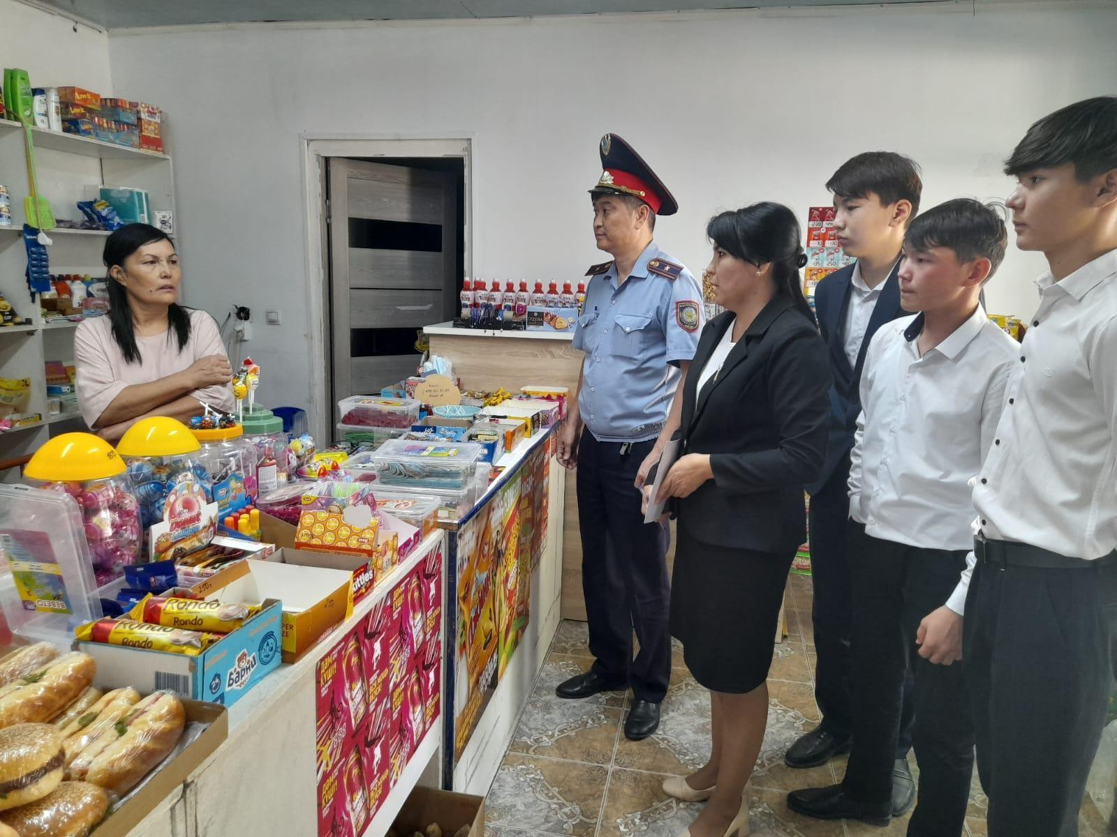 Шу ауданы әкімдігінің білім бөлімінің «Ыбырай Алтынсарин атындағы орта мектебі» КММ-нде кәмелеттік жасқа толмағандар арасында құқық бұзушылықтың алдын алу мақсатында 2022 жылы қыркүйек айының 19-ы күні Шу АПБ-нің ЖПҚ ЮПБ-нің учаскелік полиция инспекторы полиция майоры Б.С.Жайлыбеков пен директордың құқықтық тәрбие ісі жөніндегі орынбасары М.М.Нурбекова, «Полицияның жас көмекшілері» тобының мүшелері мектеп жанындағы Ж.Түйебеков көшесінде орналасқан «Нұрбол», «Томирис» дүкендеріне рейд жұмыстарын жүргізіп, дүкеншілерге алкоголь, темекі, насыбай, электронды темекі т.б. өнімдерін жасөспірімдерге сатпау керектігін ескертіп, түсіндірме жұмыстары жүргізді.
