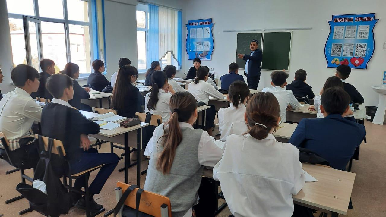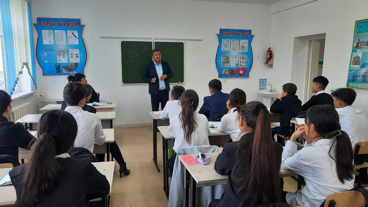 Шу қаласы «Ыбырай Алтынсарин атындағы орта мектебі» КММ-де 2022 жылдың 07 қараша күні Шу аудандық АТТ мүшесі Б.Нұрлыханов, Шу қаласы әкімі аппаратының бас маманы Ғ.Қақпанбаева 9 сынып білім алушыларымен «Діни сауаттылық-тәрбие бастауы» тақырыбында кездесу өткізді. Мақсаты:діни экстремизмнің алдын алу бойынша жастардың діни сауаттылықтарын ашу. Сондай – ақ қазақ қоғамын жайлап бара жатқан түрлі келімсек дүние ағымдар, олармен күресу, сақтану жолдары туралы, Діни наным — сенім мен олардың пайдасы, зияны турасында өмірден нақты мысалдар келтіре отырып түсіндірді. Білім алушыларды елжандылыққа, отансүйгіштікке, ізгілікке, мейірімділікке, имандылыққа шақырды.
