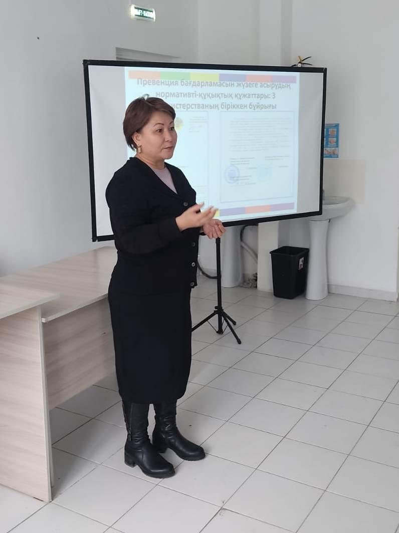 Шу қаласы «Ыбырай Алтынсарин атындағы орта мектебі» КММ-де  2022 жылдың 8-қараша күні мектеп психологы Ж.Т.Каратаева «Жамбыл облысындағы кәмелетке толмағандар арасындағы суицидтер провенциясы» бағдарламасы аясында жасөспірімдердің психикалық денсаулығын нығайту және аутодиструктивті мінез-құлықының алдын алу мақсатында «Суицид   әрекеттерінің алдын алудағы мектеп рөлі» тақырыбында вахтерларды оқыту (кіші қызметкерлер) семинарын жүргізді.
