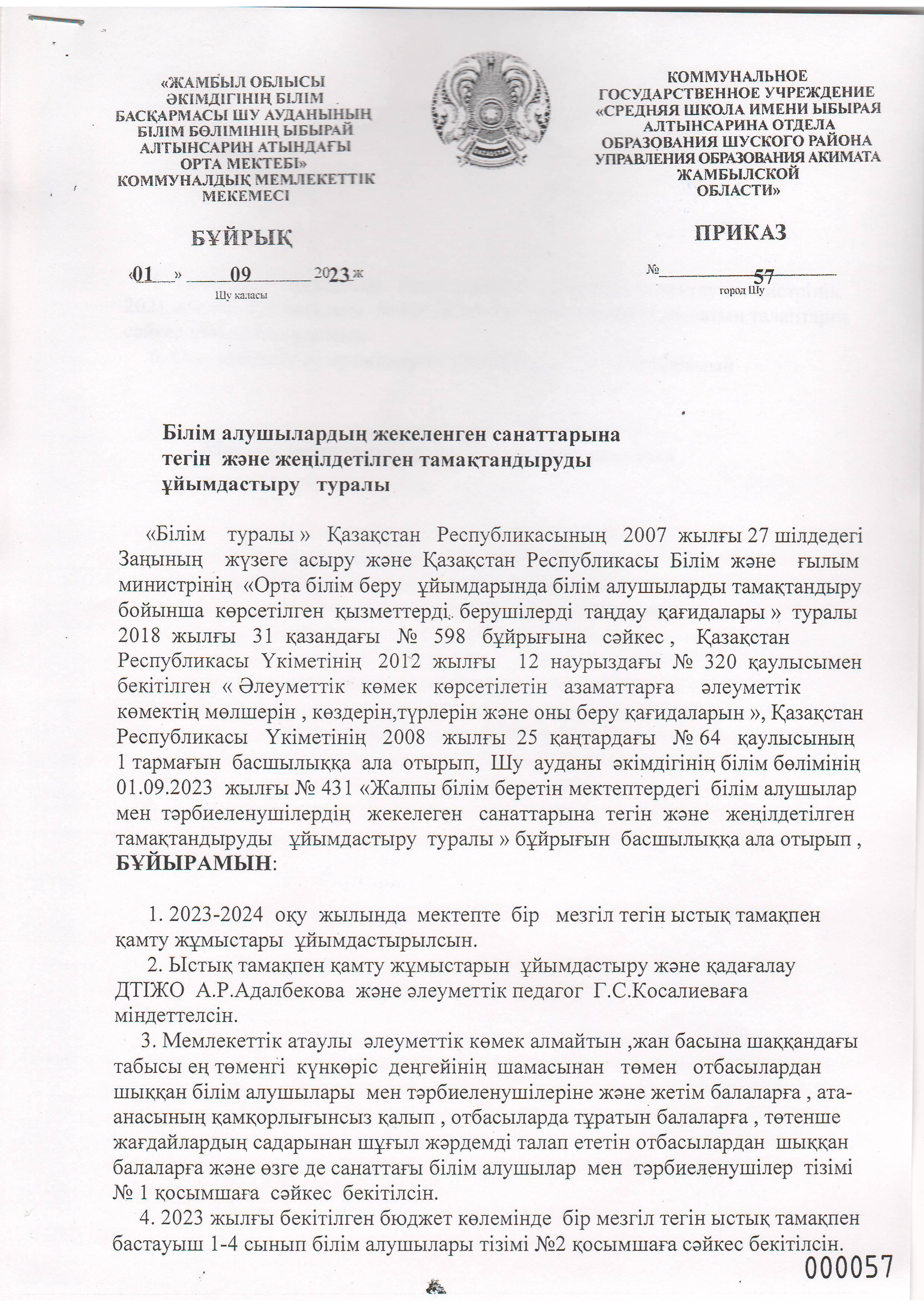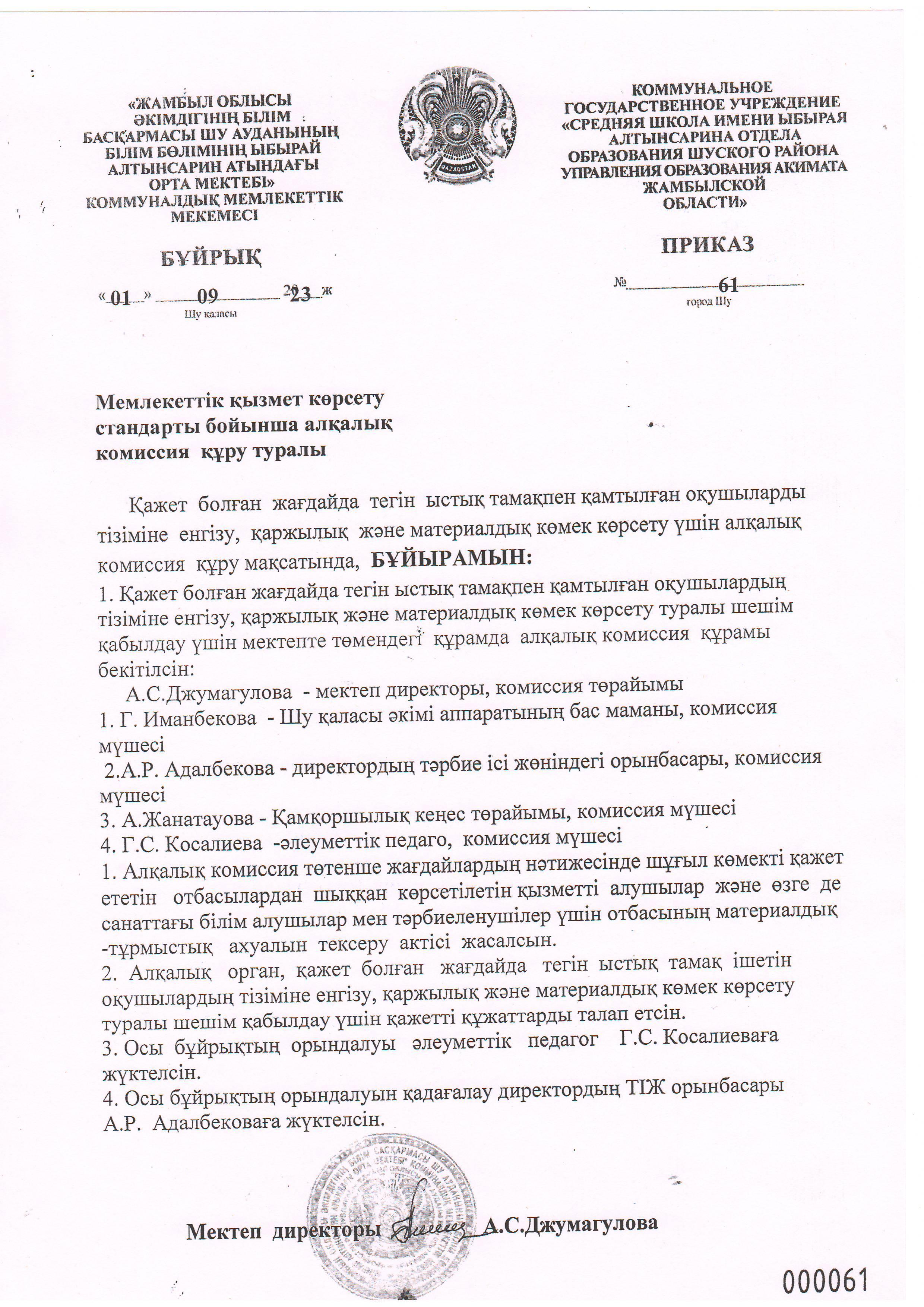 » » "Ы,Алтынсарин атындағы орта мектебі"КММ