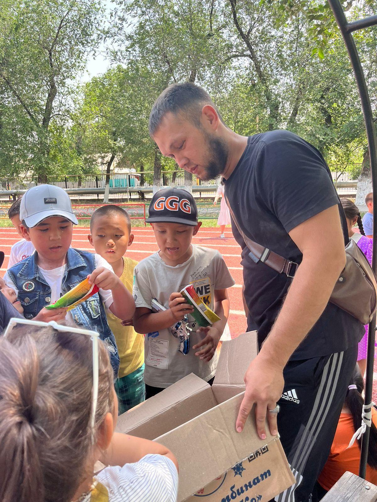 Шу қаласы «Ыбырай Алтынсарин атындағы орта мектебінде» коммуналдық мемлекеттік мекемесінде 2023 жылдың 15 маусым күні жеке кәсіпкерлер Матышев Асет, Байсалбеков Бекболат демеушілік көрсетіп, лагерьдегі балаларға тегін шырын, банан таратылды. Балалар лагерьдегі тағы бір күндерін есте қаларлықтай өткізді.