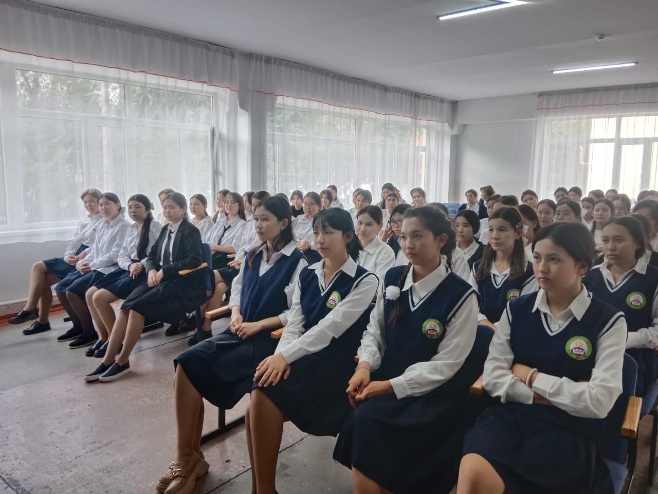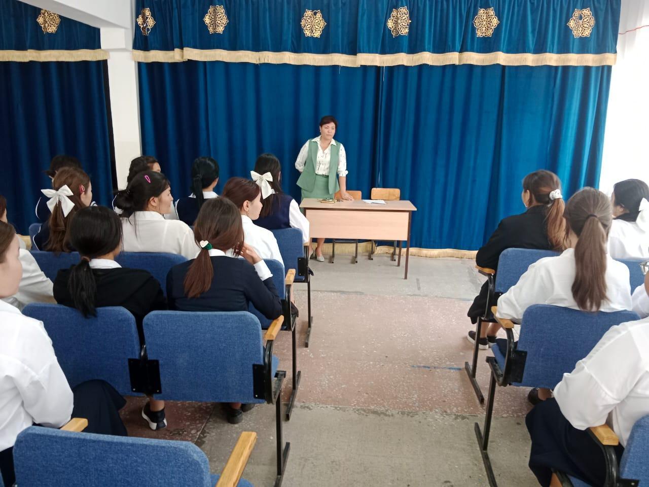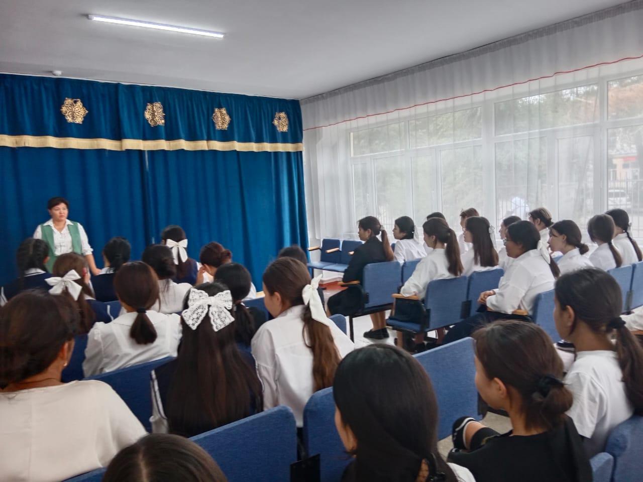 Шу қаласы «Ыбырай Алтынсарин атындағы орта мектебі» Управления образования Кызылординской области нде 2023 жылдың 7 қыркүйек күні 8-11 сыныптың қыздарына жиналыс өткізілді. Жиналыста «Қыз Жібек» қыздар клубының мүшелігіне 8 сынып қыздары қабылданды, клубтың төрайымы директордың тәрбие ісі жөніндеге орынбасары Адалбекова Асем Рустемовна қыздарға клубтың әдеп ережесімен, мүшелердің міндеттері мен жауапкершілігі туралы түсіндірді. Директордың құқықтық тәрбие ісі жөніндегі орынбасары Нурбекова Молдир Миаткуловна 8 –11 сынып қыздарына мектептің ішкі тәртіп ережесін, мектеп формасына қойлатын талаптар туралы ақпараттандыру - түсіндірме жұмысы жүргізді.