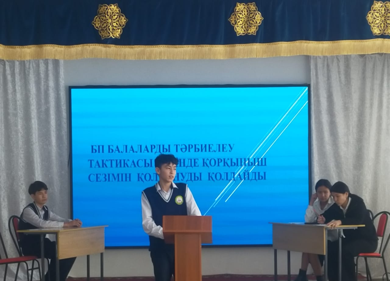 Шу қаласы «Ыбырай Алтынсарин атындағы орта мектебі» коммуналдық мемлекеттік мекемесінде тәрбие жұмысының жоспарына сәйкес, 2024 жылдың қаңтар айының 30-ы күні «БП Балаларды тәрбиелеу тактикасы ретінде қорқыныш сезімін қолдануды қолдайды» тақырыбында 8 «А» және 8 «Б» сыныптар арасында дебат өткізілді.Пікірсайысқа «Ақиқат ұшқыны» және «Ой-Дария» фракциялары қатыстырылды. Атқарылған іс-шара бойынша мәлімет, мектептің әлеуметтік парақшараларына салынды.