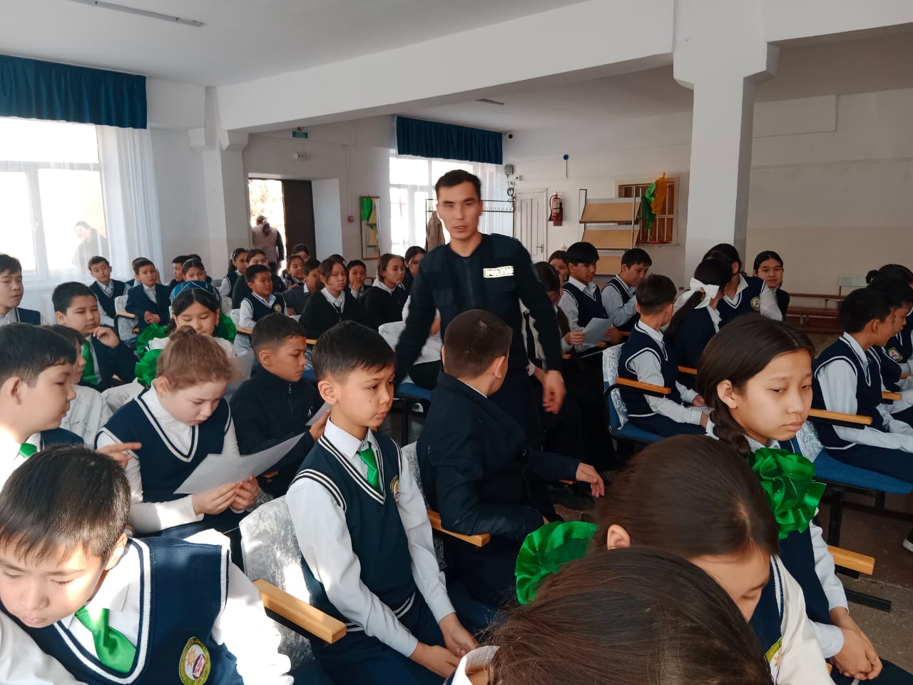 Шу ауданы әкімдігінің білім бөлімінің «Ыбырай Алтынсарин атындағы орта мектебі» КММ-нде 2024 жылдың 09  ақпан күні темір жол аумағындағы төтенше жағдайлардың алдын алу шаралары мен балалардың өмірі мен денсаулығын, қауіпсіздігін қамтамасыз ету мақсатында Шу ст.ЖПБ ӘПБ инспекторы полиция лейтенанты Ә.Ж.  Мырзан мен Шу ст.ЖПБ ӘПБ инспекторы полиция аға лейтенанты Т.Секербеков 05-29 ақпан аралығында өткізіліп жатқан қылмыстың алдын алу және «Қауіпсіз жол»  жедел  профилактикалық іс шара аясында түсіндірме жұмысын жүргізіп, бейне баян көрсетті.