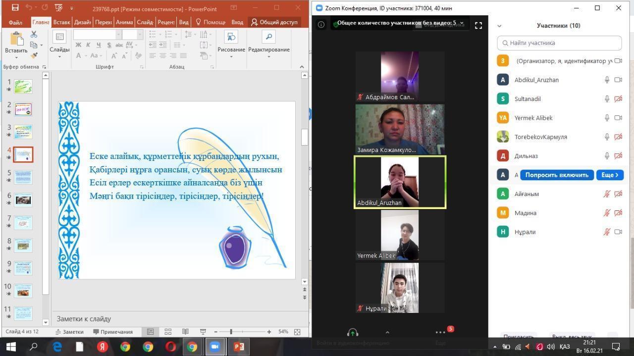 Шу қаласы «Ыбырай Алтынсарин атындағы орта мектебі» КММ-сі 2021 жылдың 15-20 ақпан аралығында Тәуелсіздіктің 30 жылдығына орай Кеңес Одағы әсерінің Ауғаныстан жерінен шыққанына 32 жыл толуына орай «Ауғанның от жалыны» тақырыбында сынып сағаттары өткізілді. Мақсаты: Тәуелсіздік жолында күрескен ағаларымыздың ерлігін кейінгі ұрпаққа үлгі ете отырып, жастарды отансүйгіштікке , ерлікке баулу. Ауған соғысы ардагерлеріне құрмет көрсету.