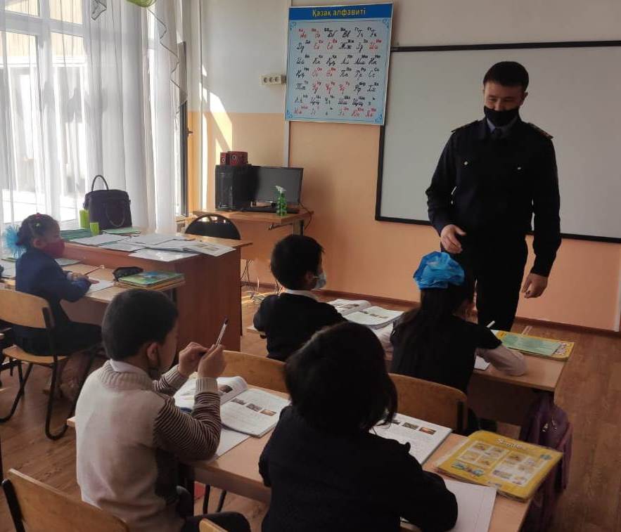 Шу қаласы «Ыбырай Алтынсарин атындағы орта мектебі» Управления образования Кызылординской области нде Шу аудандық білім бөлімінің "Қиын бала болмайды" жобасы аясында 2021 жылдың 8 сәуір күні Шу АПБ-нің ЖІІҚ-нің ювеналдық полиция бөлімшесінің инспекторы, полиция капитаны Джабасбаев Бахытжан жасөспірімдер арасында құқық бұзушылықтың алдын алу, бөгде адамдар тарапынан туындауы мүмкін қауіп-қатерлердің алдын алу мақсатында 1-4 сынып оқушыларына және 5-11 сыныптардың білім алушыларына түсіндірме жұмыстарын жүргізді. Түсіндірме жұмысы барысында бөгде адамдар тарапынан туындауы мүмкін қауіп-қатерлерден қалай сақтану керектігі туралы, ҚР Администрация құқық бұзушылық Кодексінің 435,442,448,440 баптарымен және ҚР Қылмыстық Кодексінің 274-бап. Көрінеу жалған ақпарат тарату бабымен таныстырып, қандайда бұзақылық жасаған жағдайда жауапқа тартылатыны туралы ескертті.