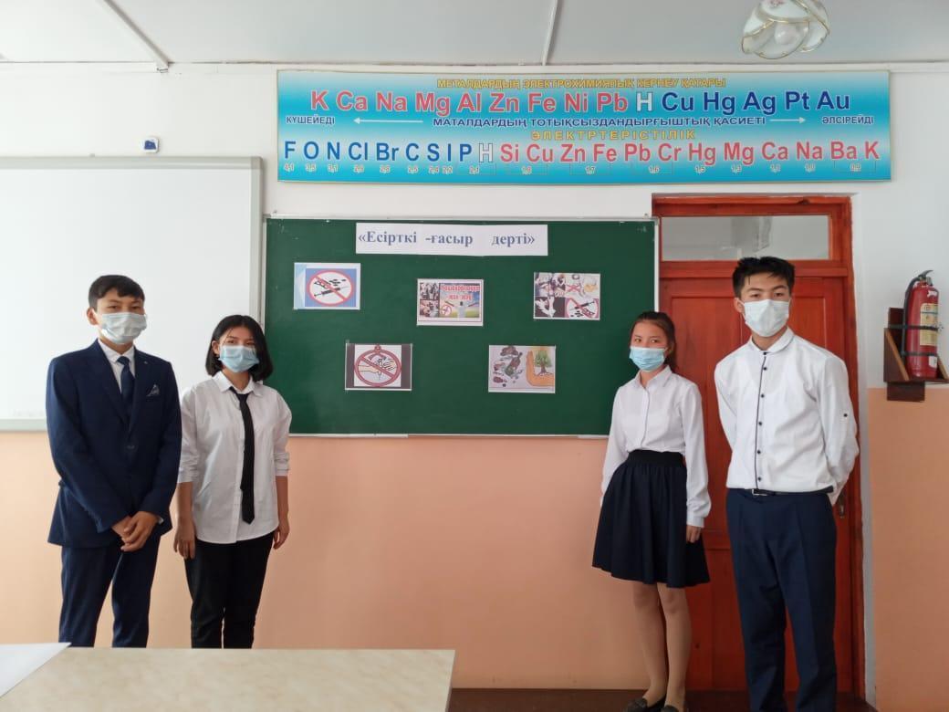 іс-шара жоспары аясында жасөспірімдер арасында есірткіні және зиянды заттарды пайдаланудың алдын алу, салауатты өмір салтын қалыптастыру мақсатында 5-11 сыныптар арасында «Есірткі – ғасыр дерті» тақырыбында сынып сағаттары өткізілді.