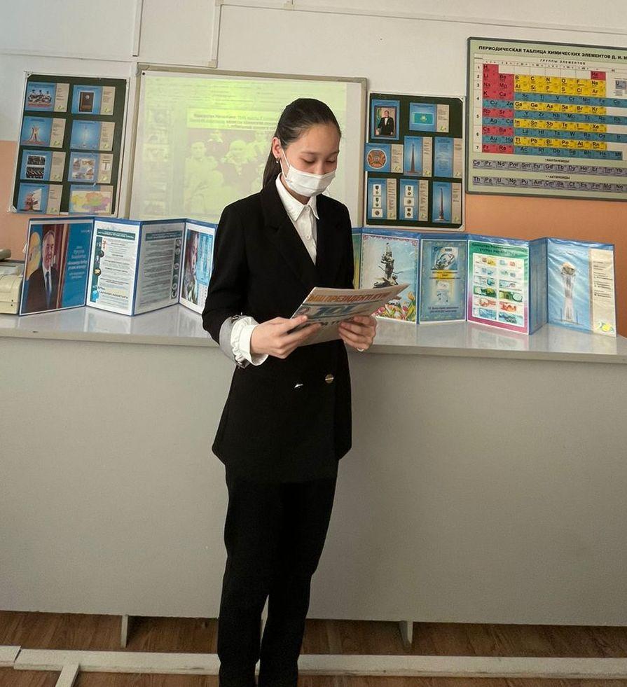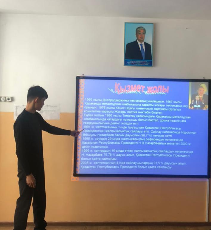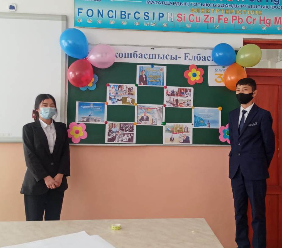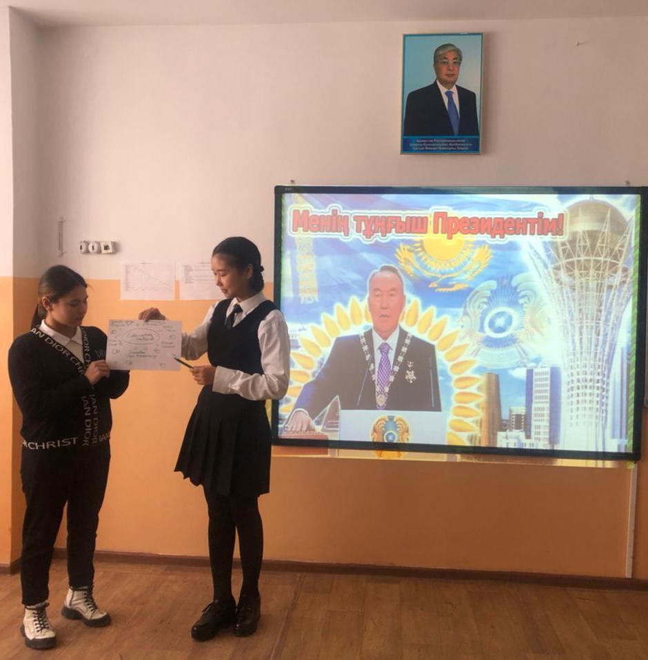 Шу қаласы «Ыбырай Алтынсарин атындағы орта мектебі»Управления образования Кызылординской области нде 2021жылдың 26-29 қараша аралығында 1-9 сынып жетекшілерінің ұйымдастырумен «Әлем таныған-тұлға» , «Елім деп соққан жүрегім-алып –тұлға -Елбасы», «Елбасы-Ұлы Тұлға» атты таным сағаттары өткізілді.Елбасы Нұрсұлтан Әбішұлы Назарбаевтың өмірі мен шығармалары, тәуелсіз мемлекеттің тізгінін ұстаған кездегі атқарған қызметі, Қазақстанды әлемдік аренаға таныту жолындағы еңбегі жайлы бейне баян көрсетіліп, ақпарат берілді. 9-11 сыныптарда Елбасының ел дамуындағы рөлін,елдіктің жеті тұғырын, елбасының экономикада, мәдениетте, әлеуметттік салаларда жасаған стратегиялық бағдарламалары мен жолдаулары туралы құнды ақпараттар берілді.