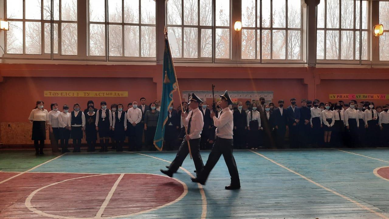 Шу қаласы «Ыбырай Алтынсарин атындағы орта мектебі» КММ-де 2021 жылдың 13 желтоқсан күні Қазақстан Республикасының тәуелсіздігінің 30 жылдық мерейтойын атап өтуге арналған іс-шара жоспарына сәйкес Тәлімгер А.О.Ақшабаева «Жас сарбаз» ұйымының жетекшісі Т.Н.Сағырбаевтың ұйымдастыруымен «Менің әнұраным» флешмобы орындалды. Іс-шараға 1а,б, 8а,б, 9а,10а,11а сыныптары және мектеп ұжымы қатысты. Іс-шараға мелекеттік ту кіргізіліп, әнұран шырқалды.