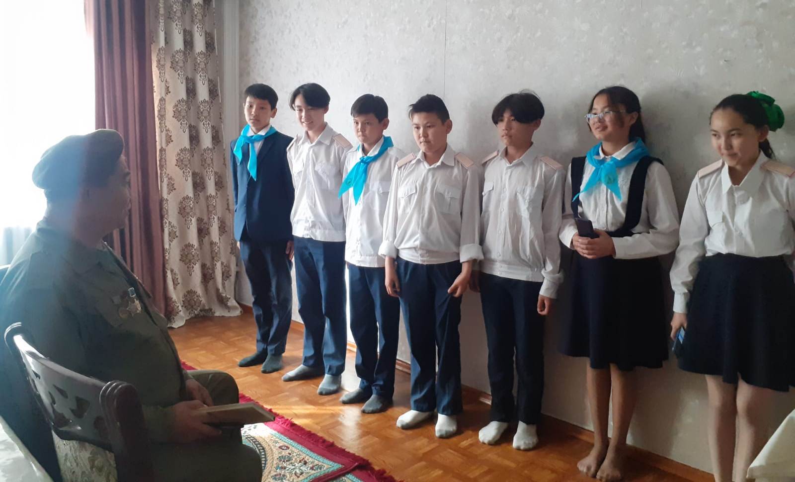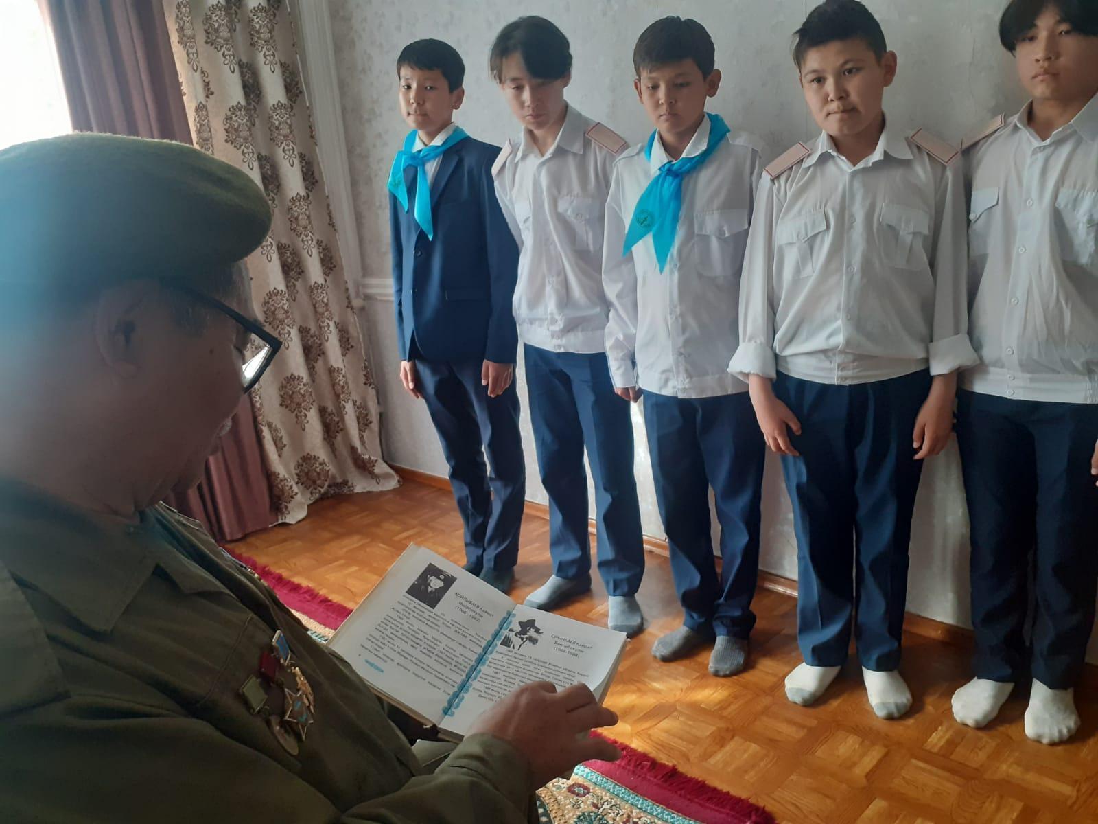 Шу қаласы «Ыбырай Алтынсарин атындағы орта мектебі» КММ-де 7 – мамыр Отан қорғаушылар күніне орай өткізілетін іс – шара жоспарына сәйкес «Әскери жолмен, жігерлі ұлан болайық» тақырыбында кездесу ұйымдастырылды. Кездесу барысында «Жас Ұлан» ұйымының мүшелері мен «Жалын» өзін – өзі басқару ұйымының мүшелері Ауған соғысы ардагері Тұрысбаев Мұрат Рзаханұлының үйіне барып қайтты.