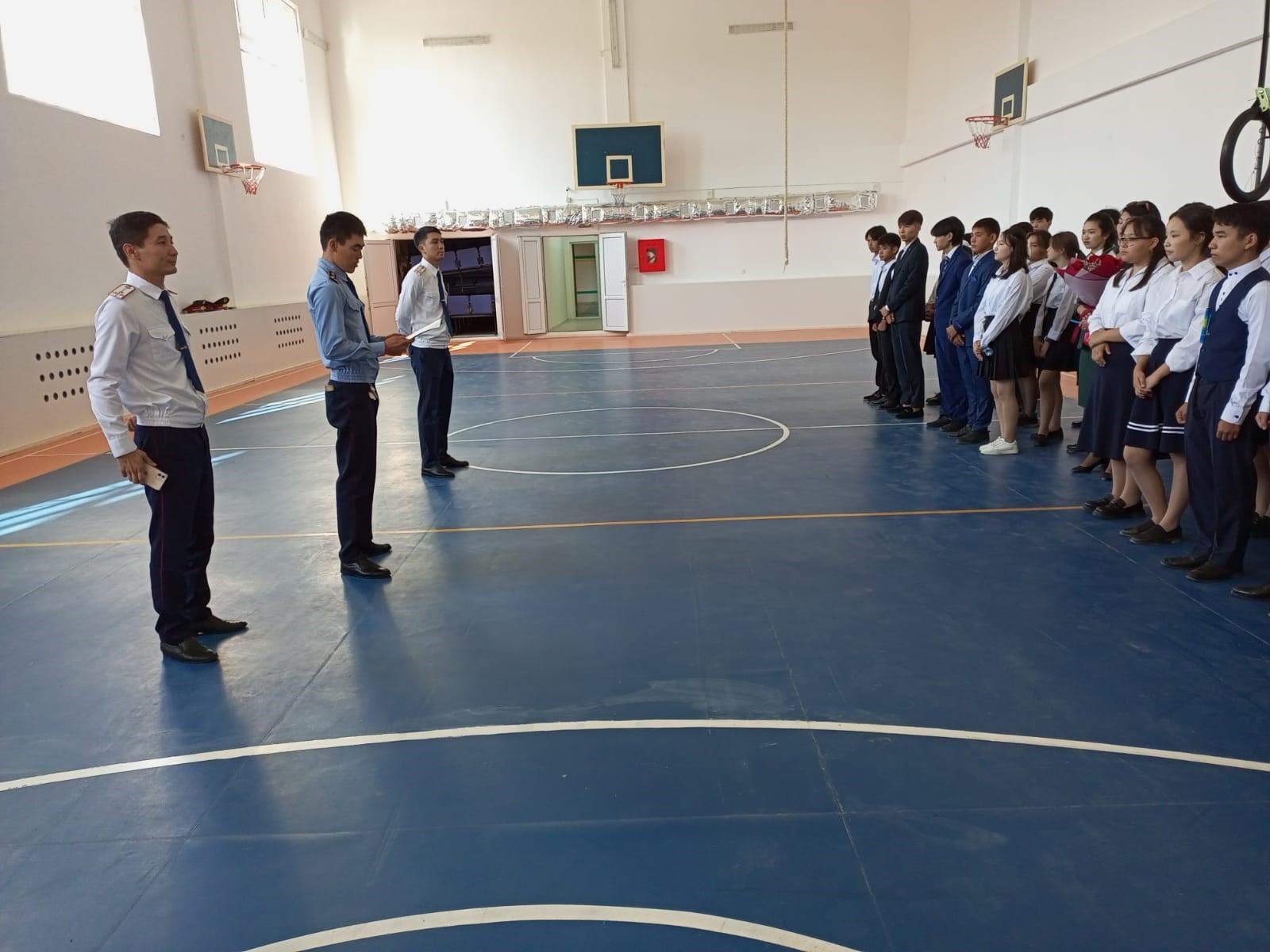 Шу   қаласы «Ыбырай Алтынсарин атындағы орта мектебі»КММ-де 2022 жылдың 1-қыркүйек күні   Шу станциясы ЖПБ тергеу бөлімшесінің тергеушісі полиция аға-лейтенанты  Е.Кеңесбек, Е.Тұрсынхан, анықтау тобының анықтаушысы полиция аға-лейтенанты М.Рысалы 9-11 сынып білім алушыларына «Темір жол бойындағы  қауіпсіздік»  тақырыбында дәріс оқып, ақпараттандыру –түсіндірме жұмысын жүргізді. Қауіпсіздікті сақтау басты назарда  болуын, жедел желі қызыметінің  байланыс номерлері  туралы ақпарат берді.