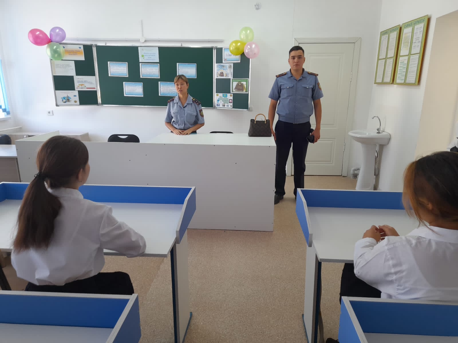 Шу қаласы "Ыбырай Алтынсарин атындағы орта мектебі" КММ-де кәмелетке толмағандар арасында құқық бұзушылықтың алдын алу және жасөспірімдердің қауіпсіздігін қамтамасыз ету мақсатында Шу АПБ ТБ полиция аға лейтенанты Б.Айдаралиева, Шу АПБ ЖПҚБ ЮПТ полиция лейтенанты Н.Өмірхан мектптің білім алушыларына "Кәмелетке толмағандардың қылмыстық жауапкершілігі" тақырыбында түсіндірме жұмысын жүргізді.