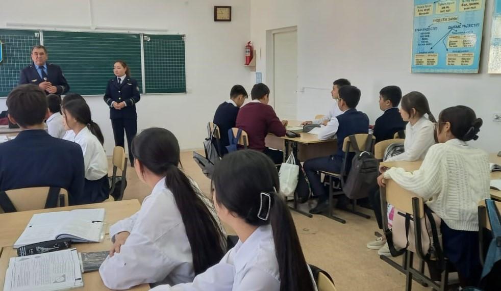 Шу қаласы «Ыбырай Алтынсарин атындағы орта мектебі» КММ-де 2022 жылдың 5-қазан күні Шу жол дистанциясы ПЧ-50 мекемесінің қызметкерлері Б.Ж.Есеев пен А.А.Кусманова жасөспірімдер арасында темір жол аймағындағы қауіптің алдын алу және болдырмау мақсатында 9 сыныптың білім алушыларына «Темір жол – қауіпті аймақ» тақырыбында түсіндірме жұмыстарын жүргізіп, темір жолдардан өткенде және темір жол нысандарында болған жағдайдағы ереже туралы жадынамалар таратып берді.