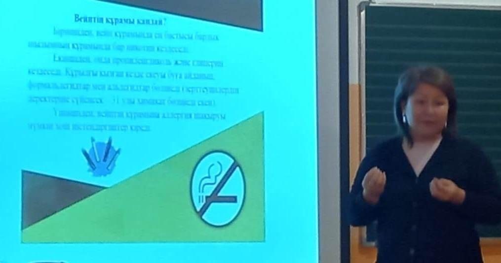 глицерин, аллергия шақыруы мүмкін хош иістендіргіштер болатынын. Бірақ сол хош иістің өзі өте қауіпті екенін. Вейп темекінің адам ағзасына, өміріне қауіпті екенін видеоролик арқылы көрсете отырып түсіндірме жұмыстарын жүргізілді.