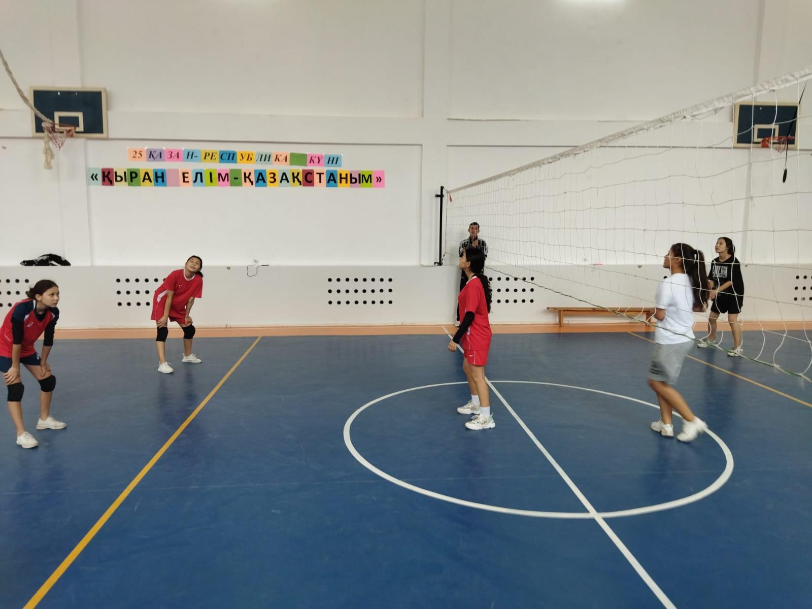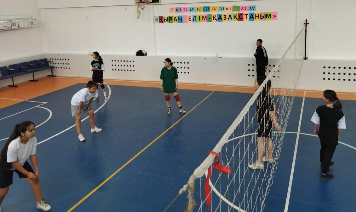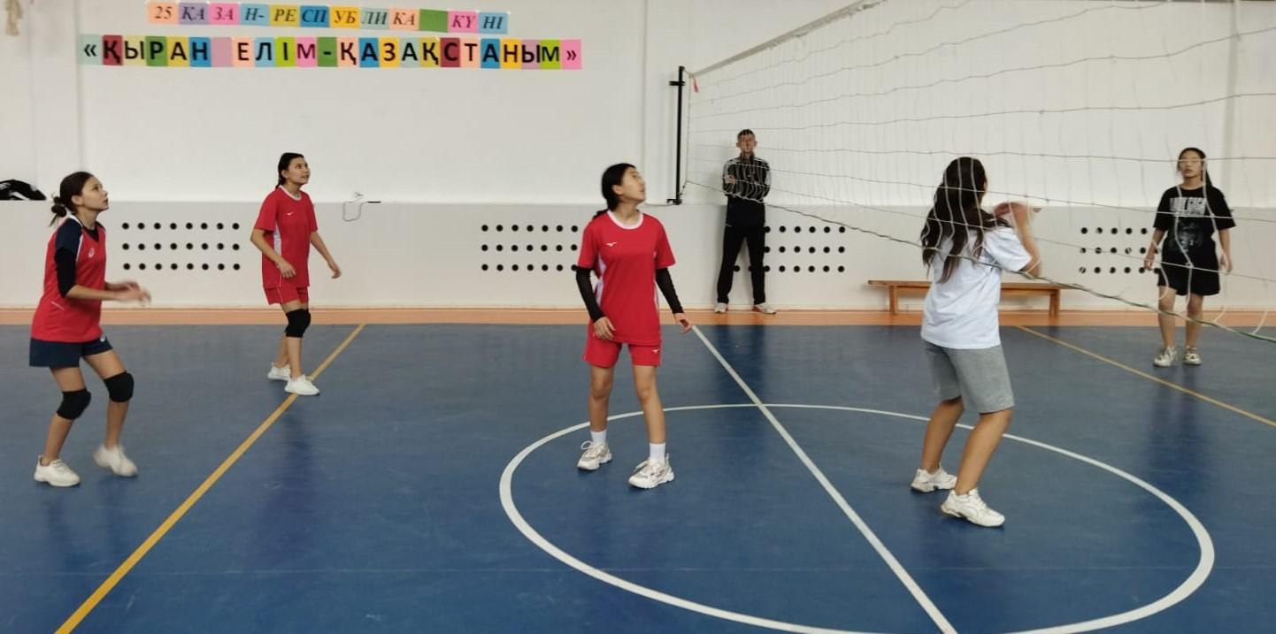 Шу қаласы "Ыбырай Алтынсарин атындағы орта мектебі" КММ-де 2022 жылдың қазан айының 19 күні  дене шынықтыру пән мұғалімдерінің ұйымдастыруымен,25 қазан-Республика күніне орай  “Қыран елім-Қазақстаным!”   тақырыбында волейболдан қыздар арасында мектепаралық жолдастық кездесу ұйымдастырды.