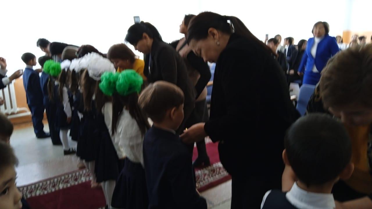 Білім алушыларға төсбелгілерін тағу және «Жас Ұлан» ұйымына мүше етіп қабылдау рәсімі мектеп әкімшілігі мен ұстаздарға тапсырылды.