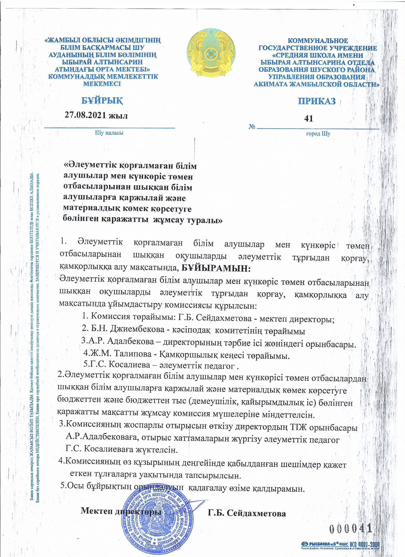 » » Шу қаласы «Ыбырай Алтынсарин атындағы орта мектебі»КММ